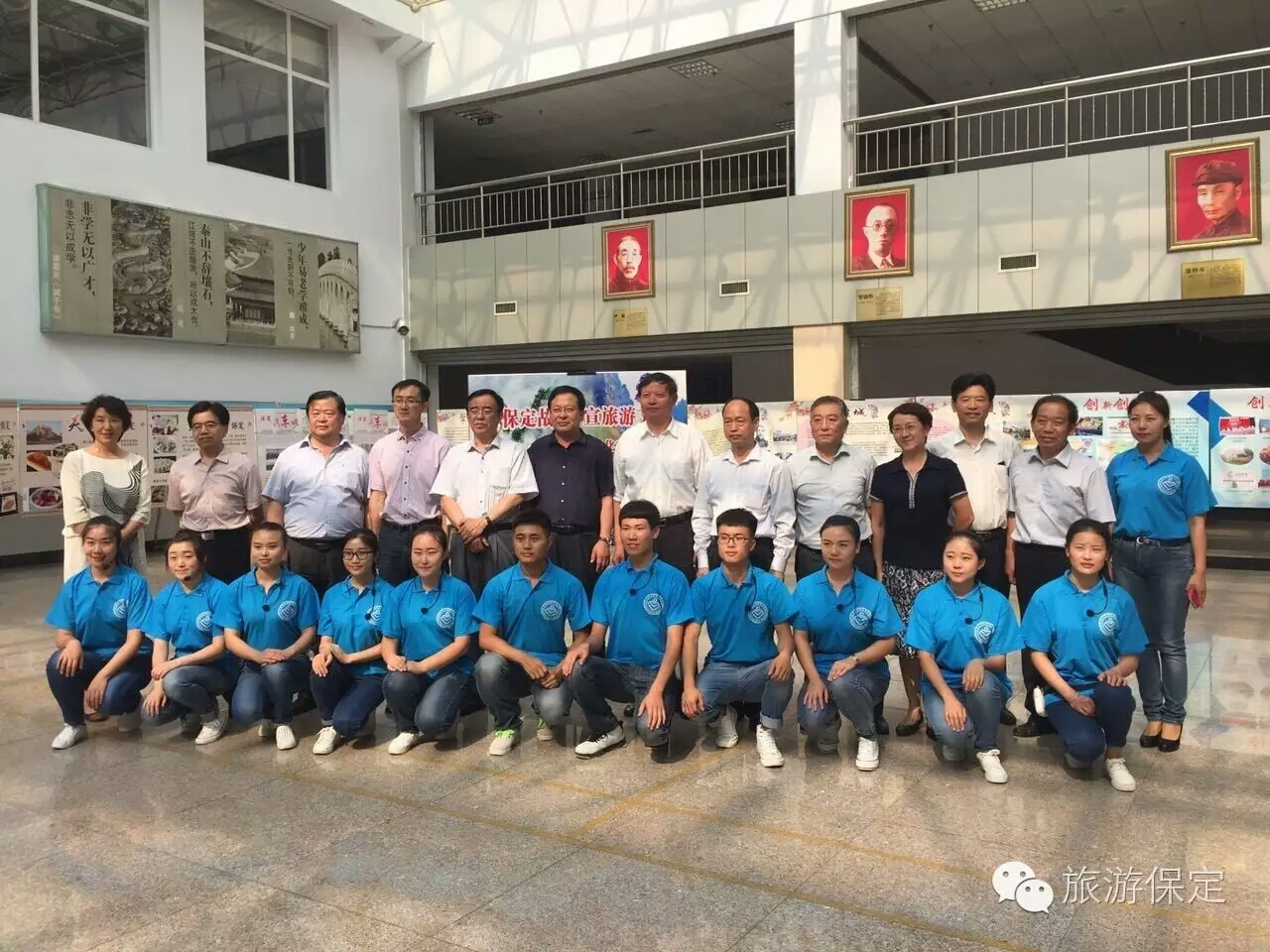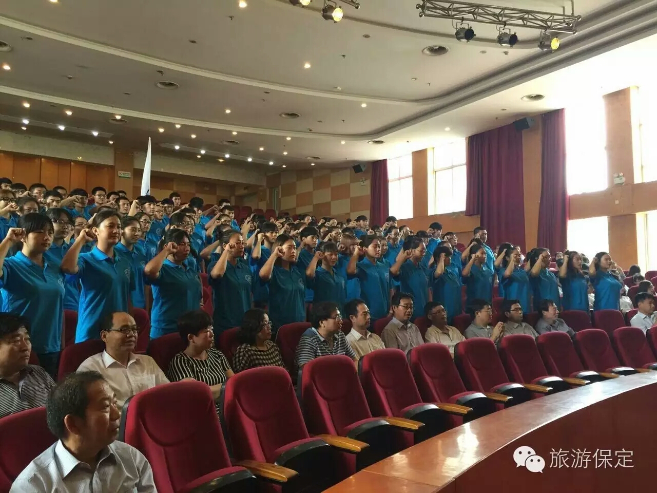 为加强公司与市旅游局的深度合作,市旅游局决定将我系作为“保定旅游服务志愿者培训基地”,市旅游局局长李洪强在仪式上向我系张振威主任颁发了“保定旅游服务志愿者培训基地”牌匾,旅游局副局长袁保军将“旅游服务志愿者”旗郑重地交到了志愿者代表谷晨超手中,一百名旅游服务志愿者在朱燕芝书记的带领下进行了集体宣誓,表达了志愿服务的信心和决心。仪式后,在图书馆大厅,志愿者们简洁流畅又极富感染力的现场宣讲,充分展现了保定市深厚的文化积淀和高昂的城市精神,让与会领导和嘉宾赞不绝口。