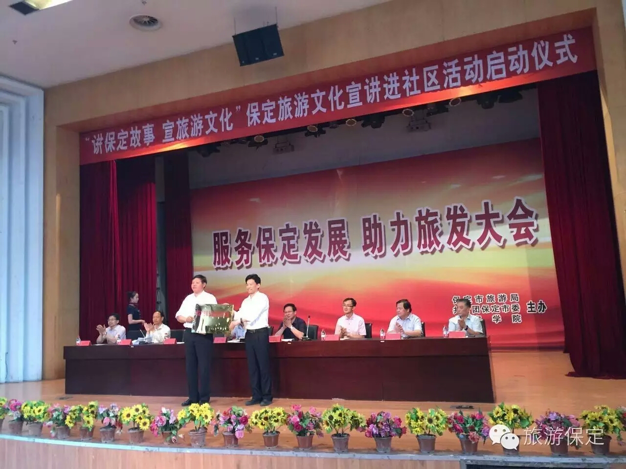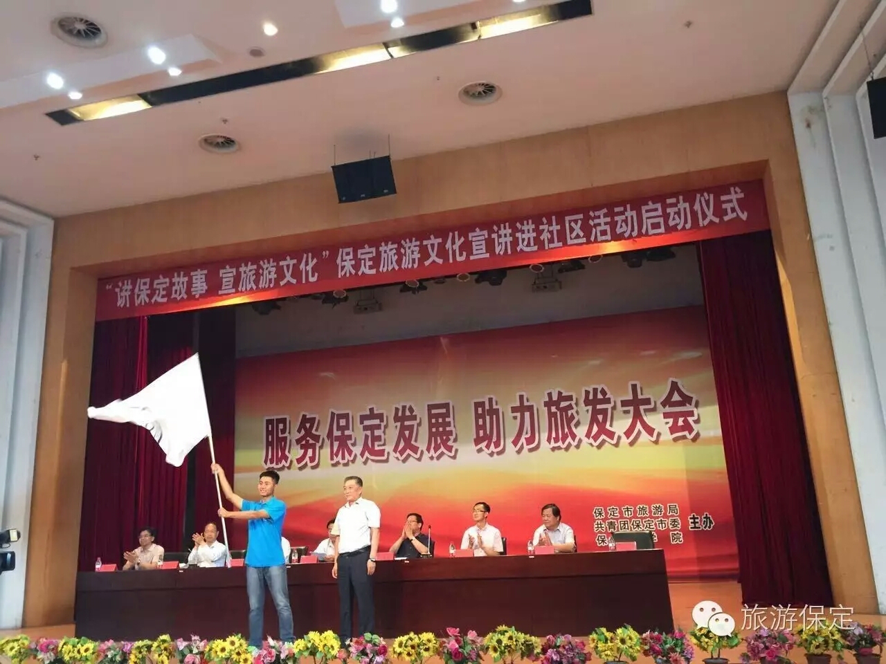 6月8日下午,由太阳成集团tyc151cc官网、保定市旅游局、团市委共同举办的“讲保定故事 宣旅游文化”旅游文化宣讲进社区活动启动仪式在公司隆重举行。保定公司党委书记王军、经理胡连利、副书记宋书通、党委常委徐景星,市委宣传部常务副部长贡希强、市旅游局局长李洪强、团市委书记金培元、市旅游局副局长袁保军出席仪式,各系党总支书记、相关部门负责人以及700余名师生参加了仪式。