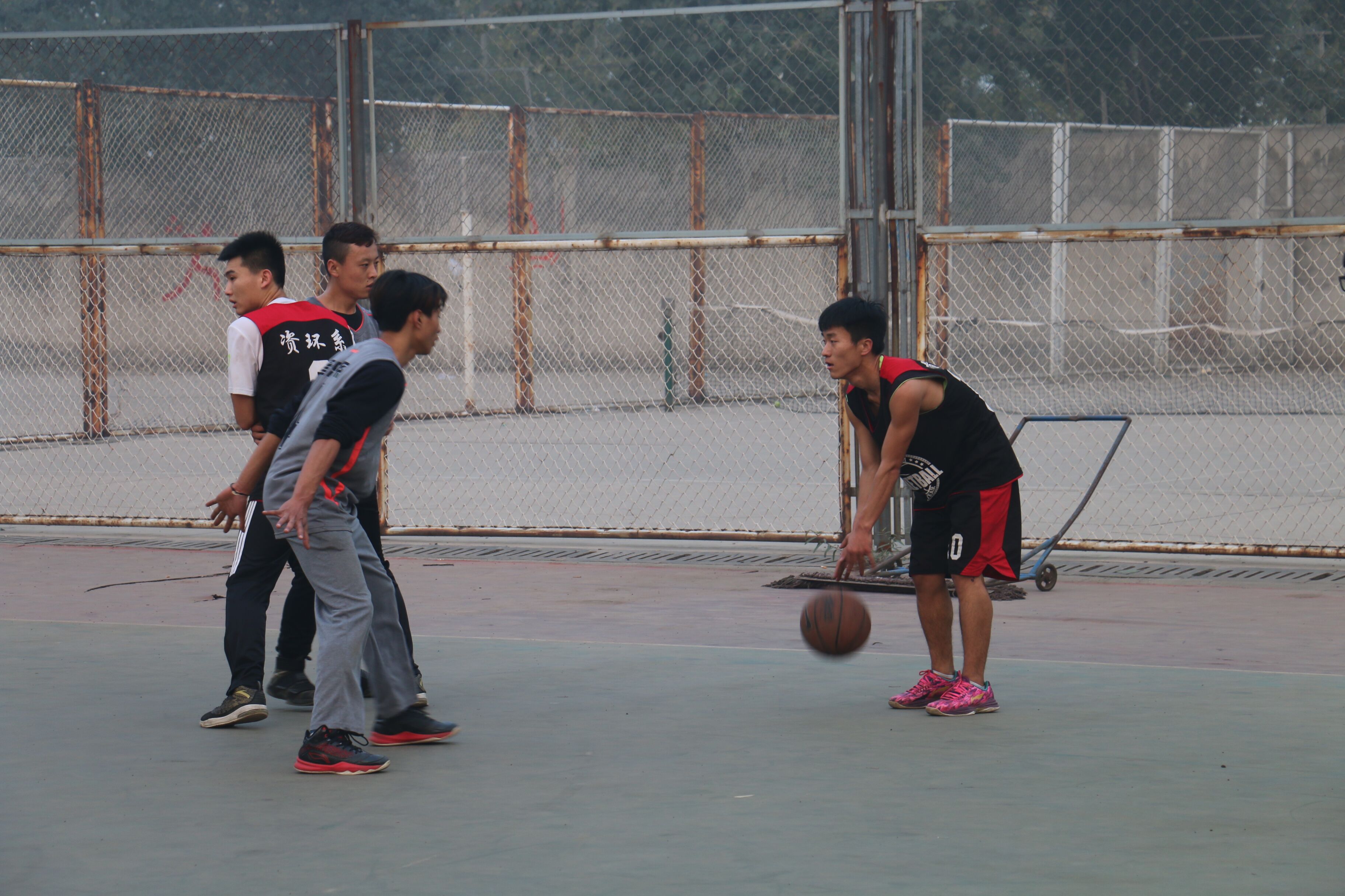 天虽凉,我系队员依然士气高涨。开局打出7:3的小高潮。随后音乐系加强了进攻,我系防守出现漏洞被他们追上比分。但是很快我系就进行了调整。加强防守,频频进攻。我系刘志成同学凭借身高优势多次成功防守拦球。两对比分一直僵持不下,双方实力不分伯仲。我系以稍落后进入下半场比赛。下半场开始,音乐系频频进攻,我系也展开了猛烈的攻势,双方队员均使出浑身解数,奈何比分拉开,我系以31:37惜败对手,获得第六名。