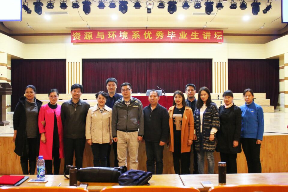 2017年4月5日下午,资源与环境系在音乐厅举行了一场别开生面的讲坛。我系领导、辅导员教师及大一全体同学参加了此次讲坛。主讲人是我系优秀毕业生董昕鹏。