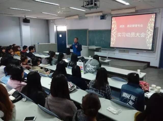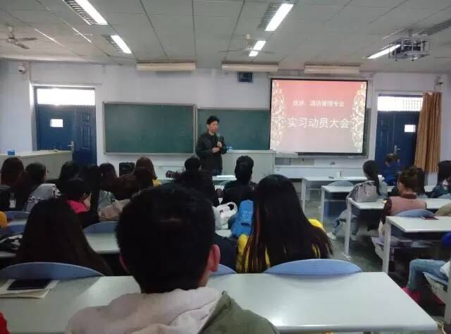 盼望着,盼望着,终于啦!旅游、酒店管理专业实习动员大会召开 了。