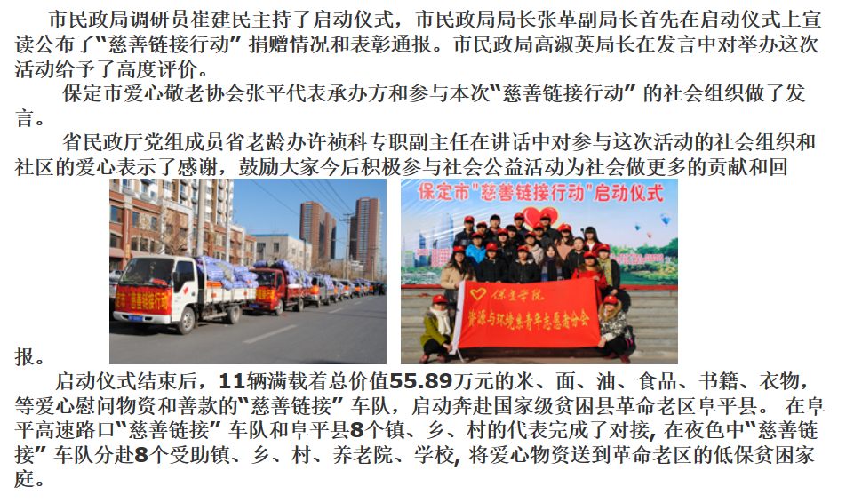 12月17日下午2点,我系参加了由市民政局主办、市爱心敬老协会承办的,保定市“慈善链接” 启动仪式。