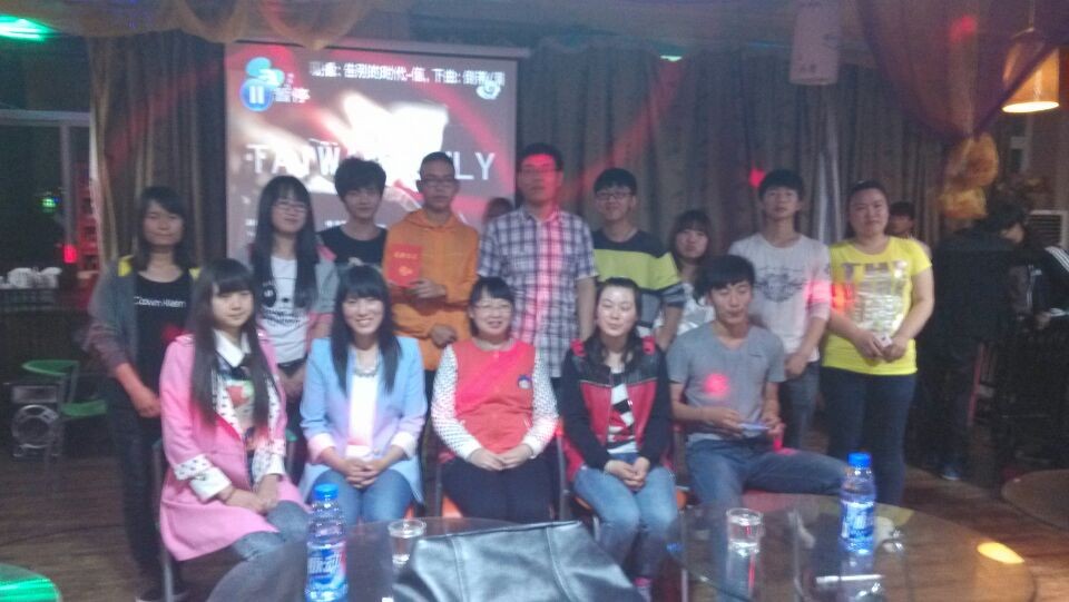 2014年4月22日晚,在总策划刘瑜老师组织下我系在夜阑酒吧成功举办了第一季第一场“资环好声音”。同学们热情高涨,轻松应战。出席本次活动的的评委为院各系的4名文艺骨干。经过激烈角逐,13级营销专业的“双L”组合博得头筹,评委组为各选手作了详细点评并为“双L”颁发了周冠军证书。值得祝贺的是“双L”组合将直接晋级总决赛,参加本系送老晚会。