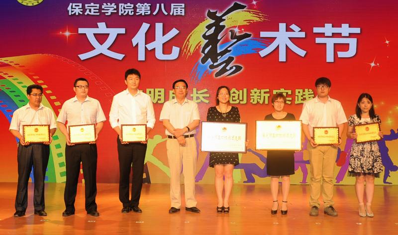 6月11日下午,公司第八届文化艺术节闭幕式暨校园人物颁奖典礼在多功能厅隆重举行。公司领导王军、崔勇、胡连利、刘清波、曹荣、回顺利、高颖、徐景星、朱红素,市委宣传部副部长、市文明办主任王淑彦,团市委书记杨跃峰,各系负责人、师生代表共七百余人参加了典礼。