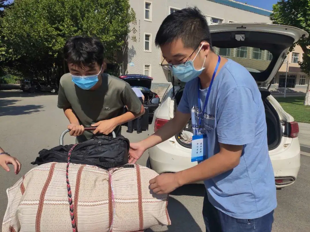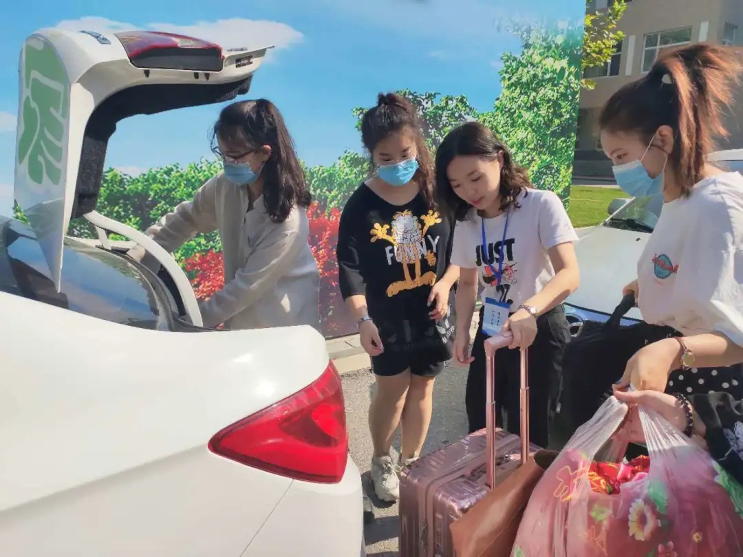 由于疫情防控的原因,送员工的私家车不准驶入校园。员工们在出示核酸检测合格报告和健康绿码之后,带着大大小小的行李进入校园。从公司大门口到员工宿舍,有一公里多的路程。尽管两辆大巴、三辆电瓶车不间断帮员工运送行李但仍旧会有一些员工在大门口等待。公司党总支组织党员志愿服务活动,号召党员教师和青年教师积极参与。同时,已返校的员工党员也参与了志愿服务。