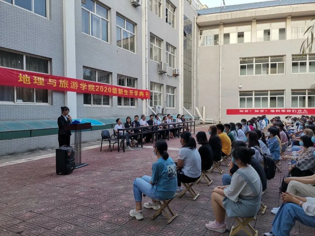 在这之后,老生代表2019级地理科学专业耿奥同学发言,向学弟学妹们表达真诚欢迎并在生活和学习上提出建议。