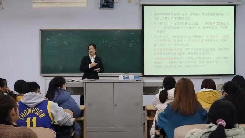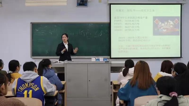 接下来,周老师从另一个视角,进一步分析了粮食安全问题:国际形势变化,使得我国的粮食安全几经挑战。周老师从中美贸易战讲到“一带一路”的海外涉粮产业;从国际形势讲到国家战略;从进口大豆讲到普通人的餐桌。我国在粮食安全问题上刻不容缓,中国人的饭碗,必须牢牢端在自己手里。同学们理智的认清了我国粮食安全的紧迫性,粮食增产是保障,粮食安全仍然紧迫。