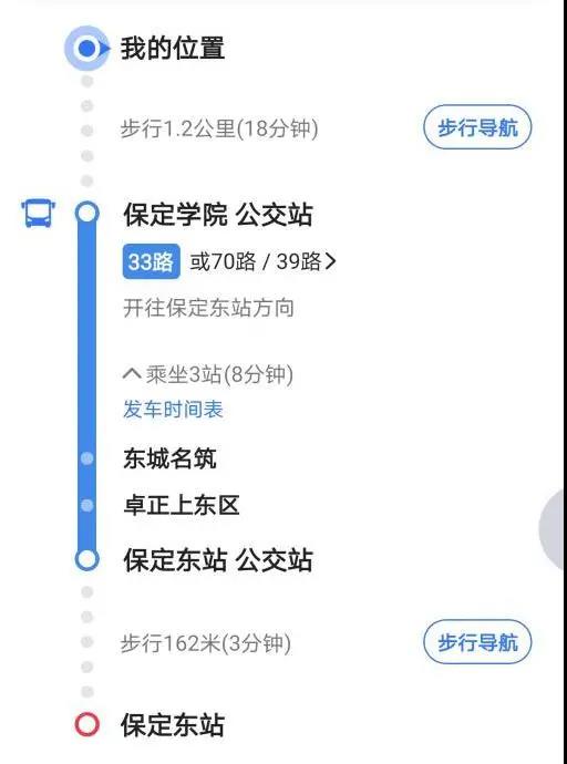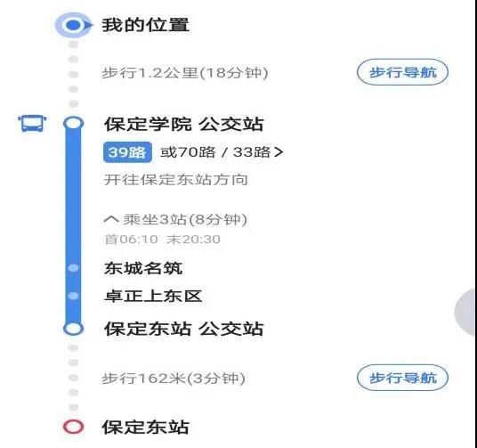 1到保定东站坐车的小伙伴需要在太阳成集团tyc151cc官网公交站乘坐70路、33路或39路,大约二十分钟左右就可以到保定东站啦、