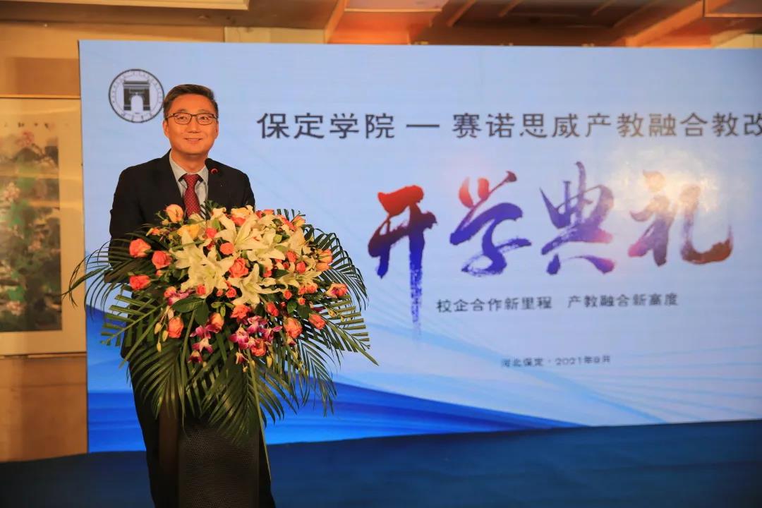 公司党委副书记,董事长韩会玲在开学典礼致辞中,首先感谢赛诺思威将国际领先的酒店管理职业教育体系引入太阳成集团tyc151cc官网,并向合作单位和参会院校介绍了公司悠久的办学历史,以及在转型发展,职业教育改革和产教融合的情况。