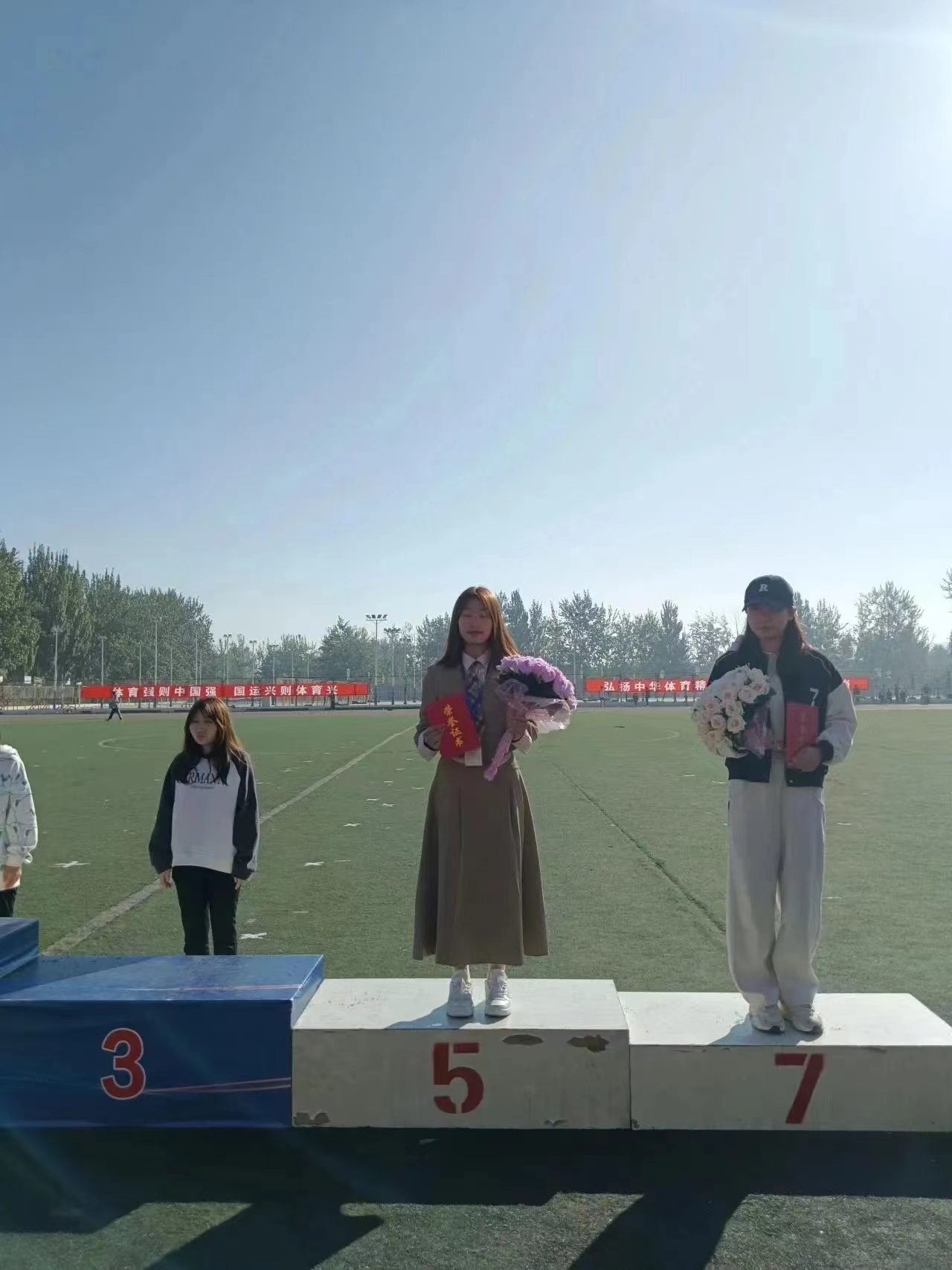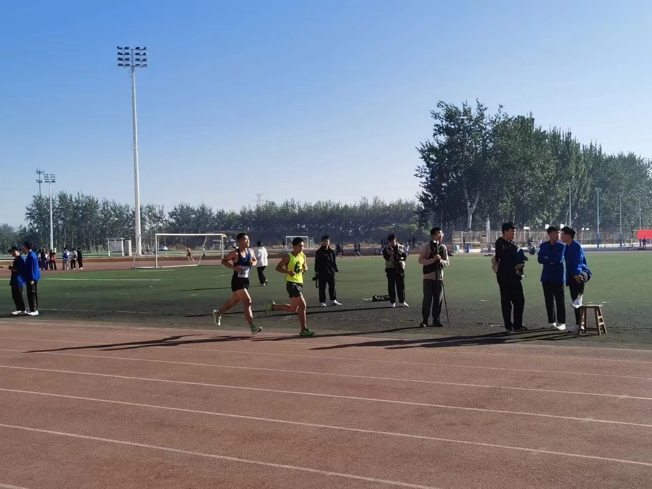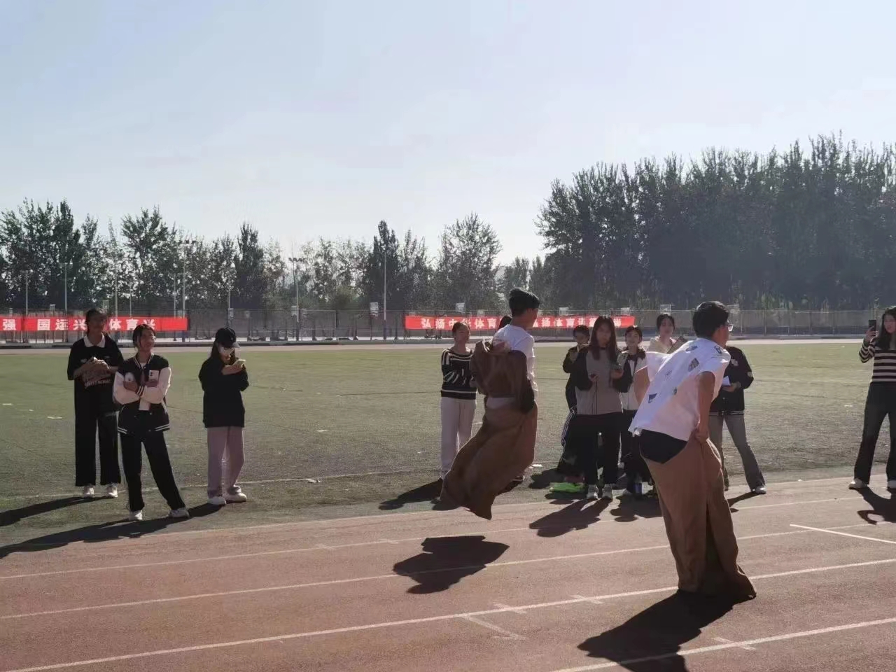 薄汗透衣衫, 清风绕指缠,云天收秋色,学子展风采, 汗水与喜悦交织共融,拼搏与感动同频共振。