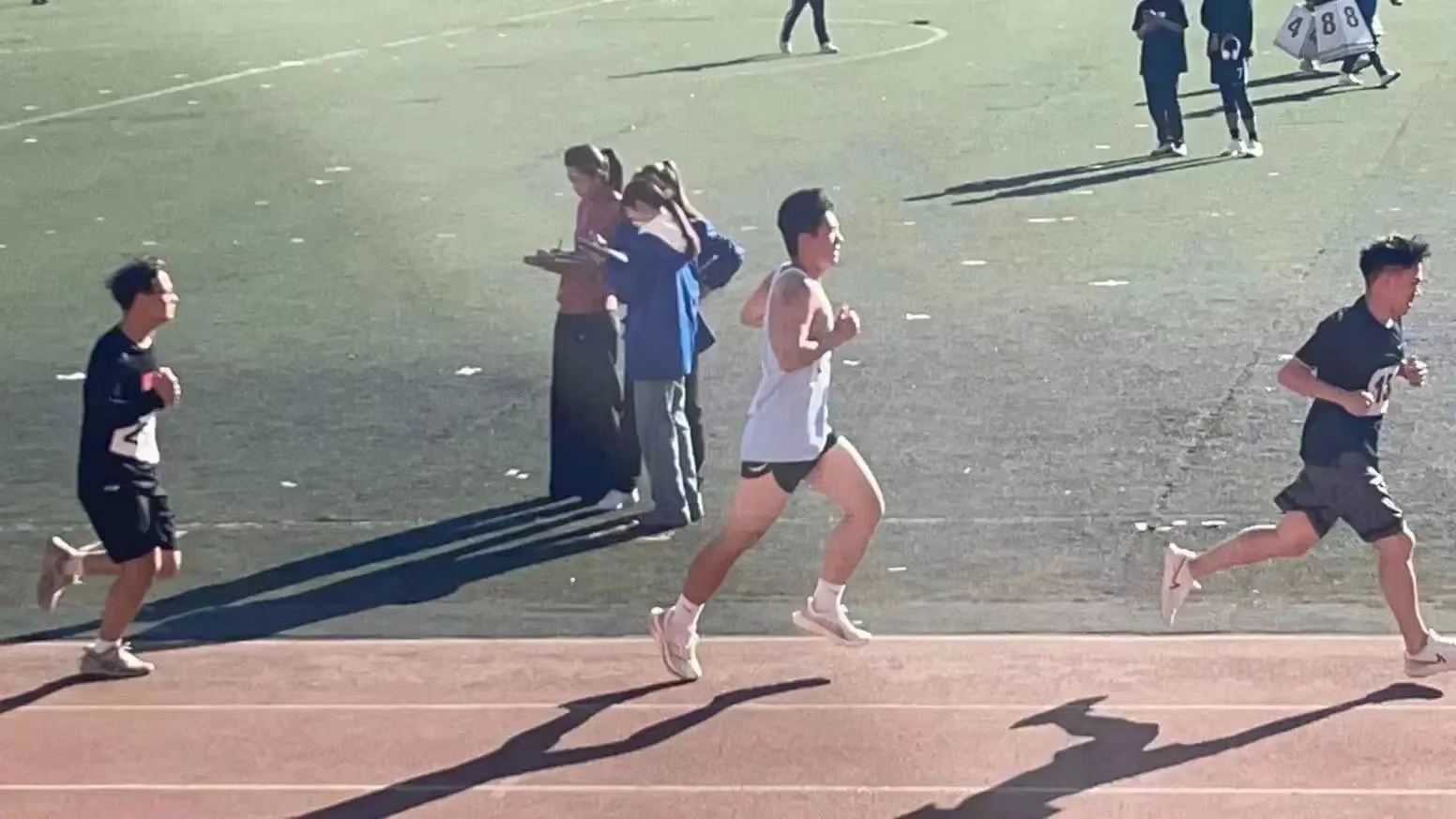 彩旗飞扬,操场上一派紧张热烈的欢腾景象。跑道上稳健的步伐奏响出动人的乐章,翩飞起舞的身影是梦想的翅膀,运动员们与赛道碰撞出激情的火花,努力拼搏的身影是写在青春篇章里的诗行。