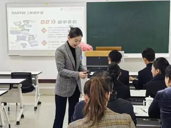 在随后的主题班会环节比赛中,辅导员老师们充分展现出对员工的深入了解和关心。他们不仅熟知员工的思维方式,更能预见并解决员工在学习和生活中可能遇到的问题。老师们的主题班会内容及形式各具特色。有的以革命题材的影视短片和习近平主席的寄语为切入点,将“红色教育”主题展开,激发员工的豪迈之心,勉励他们坚定自立自强信念;有的通过角色扮演的方式,员工们沉浸式体验了不同职业的特点,从而认识到正确的择业观与高质量的就业息息相关;有的通过真实的案例展示和师生情景模拟,让员工们切身体会到电信诈骗的严重性,深刻认识到“防诈反诈”的重要性。