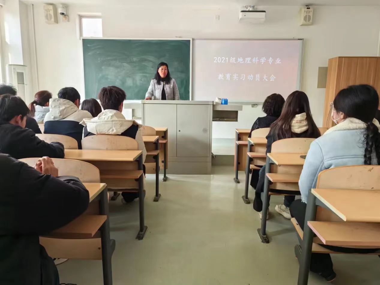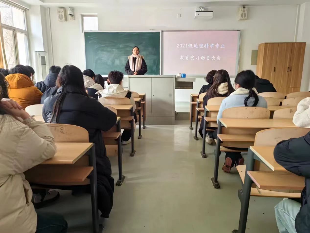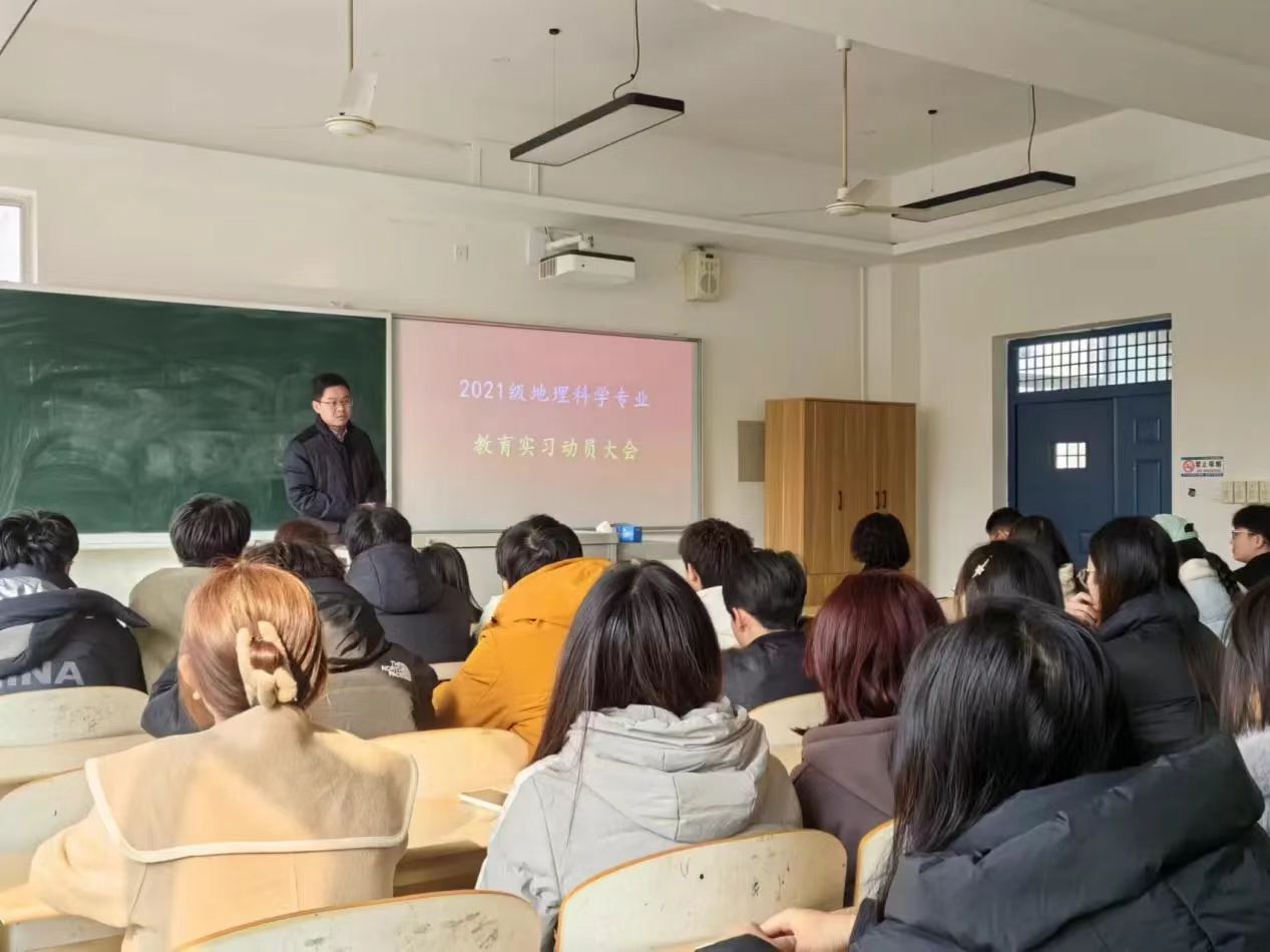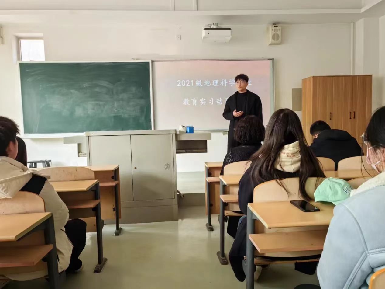 会议伊始,地理科学专业教研室主任陈召亚老师阐明了教育实践实习的重要性,鼓励同学们珍惜来之不易的实习机会,躬行实践、以行促知,汲取学长学姐实习经验,以最好的状态迎接此次教育实习。