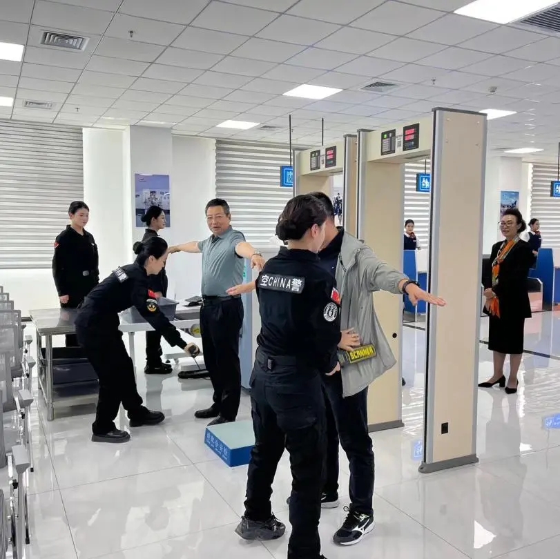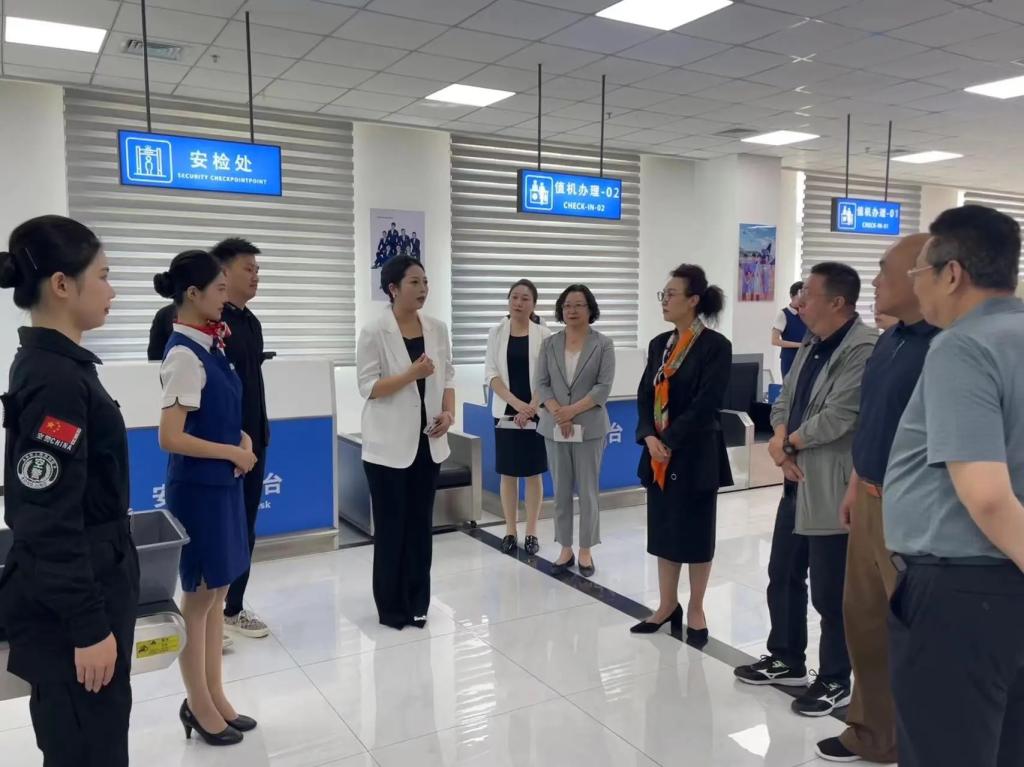 在参观过程中,航空专业讲解团的讲解员们带领各位领导参观了实训中心问询处、值机办理处、安检处以及登机处等一整条完整的地服生态链,沉浸式体验了航空模拟舱,一同感受了客舱内的真实环境。