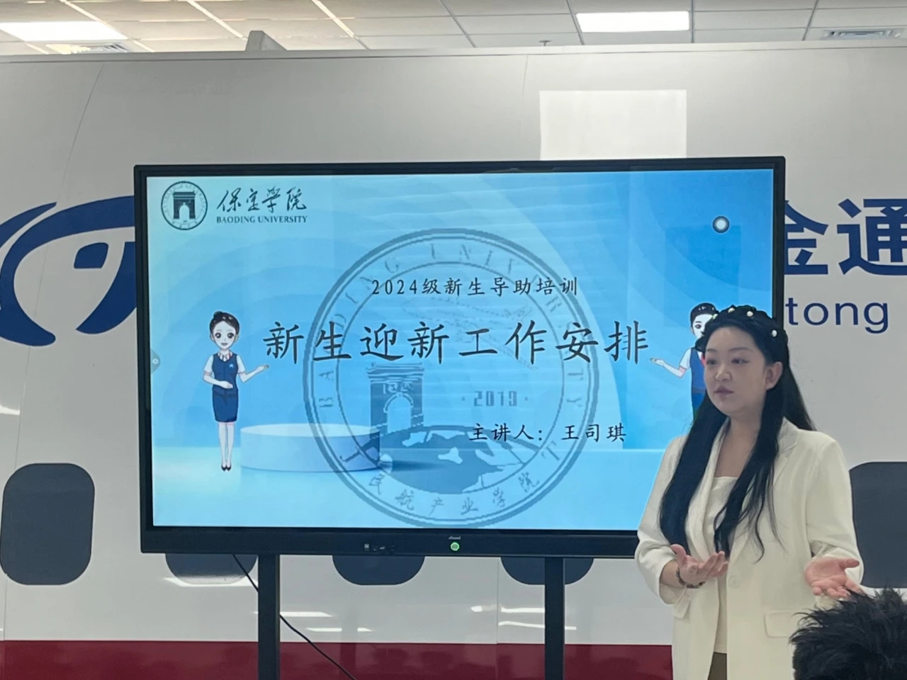 辅导员王司琪表示导助作为与新生接触最早最频繁的员工干部,务必树立正面榜样以身作则。对于迎新工作进行提前性、系统性、科学性、合理性和周到的安排,提前做好方案准备。