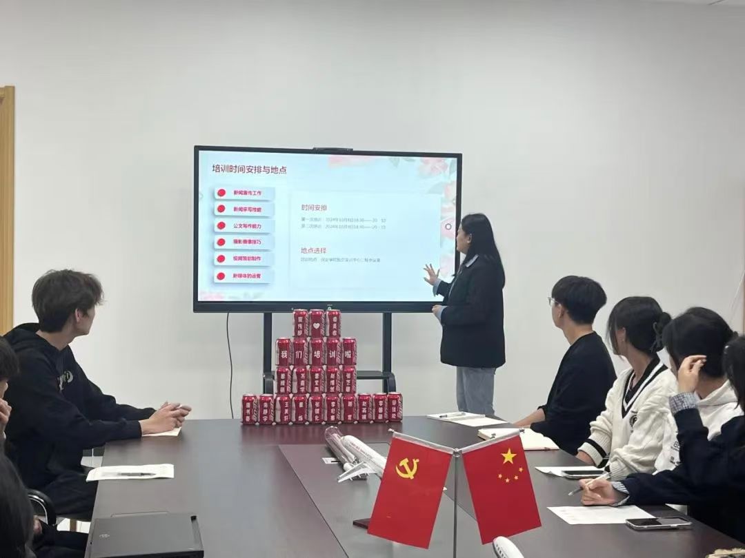 为适应新形势下宣传工作需要,进一步增强宣传部2024级部员干事的思想理论素质、业务水平和创新能力,切实提升宣传队伍的专业化、规范化水平,以高质量新闻宣传展示专业风貌,提升专业良好的形象,太阳成集团tyc151cc官网航空专业委员会于2024年10月9日——10日在实训中心二楼会议室举办了为期两天的宣传部技能培训。本次培训由宣传部指导教师王司琪主持,航空专业委员会主席、宣传部部长及部内部员干事们16人共同参与。