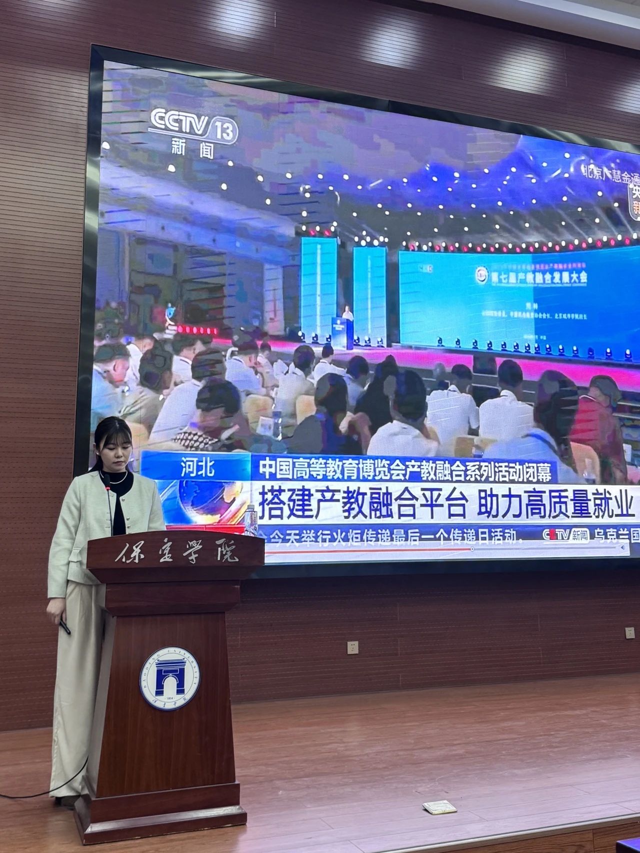 李冰洁学姐将她的参赛经历娓娓道来。起初,她在参赛与否的问题上犹豫不决,直至报名截止前的最后时刻,才下定决心投身大赛。她曾因身高问题担忧在体检环节被淘汰。然而,在与指导教师的深入沟通后,她坚定了参赛的决心。令人欣慰的是,她的身高并未成为参赛的绊脚石,反而以优异的表现赢得了评委的认可。她鼓励在座的同学们,不要因焦虑而却步,参加大赛是一次难得的历练,勇敢迈出这一步,必将收获宝贵的经验。