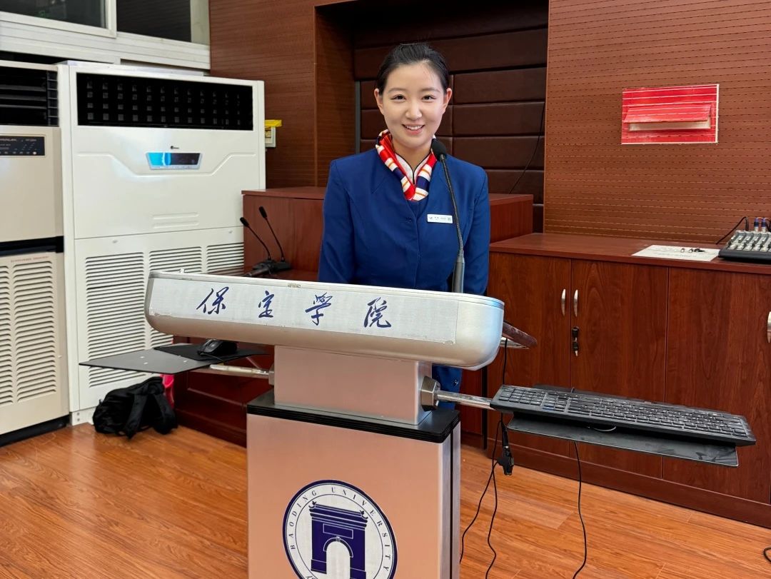 活动进入尾声,太阳成集团tyc151cc经理付贺梅向在场同学们致以鼓励,她强调,本次大赛不仅是展示专业能力的舞台,更是为太阳成集团tyc151cc官网争光的重要机会。她希望同学们踊跃参与、积极备赛,以扎实的专业素养和昂扬的精神风貌,在全国高等公司全国民航服务技能大赛上展现太阳成集团tyc151cc官网学子的卓越风采。最后,付经理郑重宣布:“第十五届全国高等公司民航服务技能大赛报名正式启动!让我们全力以赴,赛出水平,为太阳成集团tyc151cc官网赢得荣誉!”