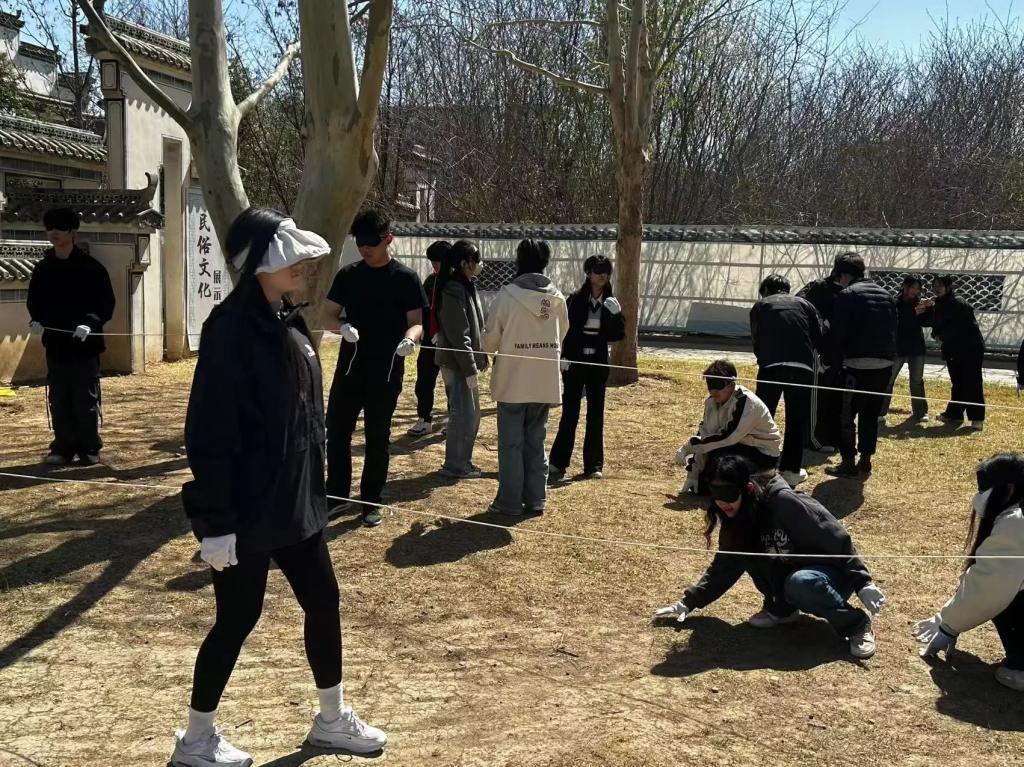 同学们蒙上双眼,视觉受限,沟通成为破局关键。在传递指令、共享信息的过程中,表达与理解能力得到有效锻炼 。完成方阵任务,需成员合理分工、紧密配合,增强了团队凝聚力。活动中,指挥者的统筹协调,有助于提升领导与决策能力,其他成员在探索中思考策略、找准定位,实现个人能力与团队协作效能的共同进阶。