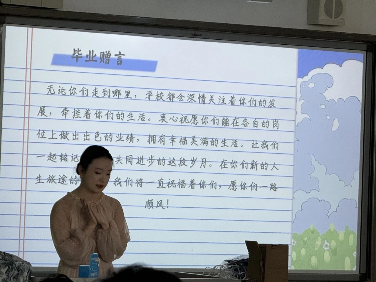 辅导员老师们为同学们讲授“毕业季最后一堂班会课”,班会课充满丝丝暖意,也让同学们感受到老师与公司对我们的关怀。