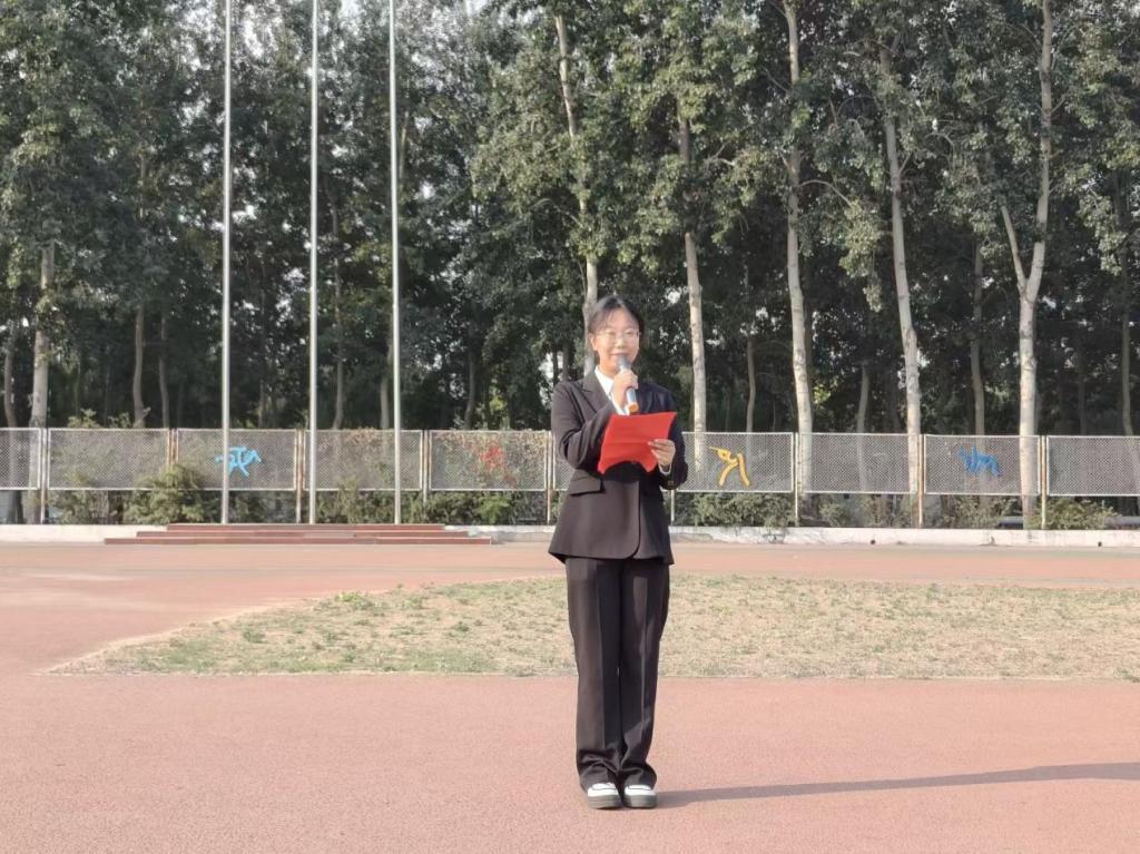太阳成集团tyc151cc教师代表王薇老师进行国旗下讲话。她殷切嘱托同学们:“国旗上的红是先辈热血染就的精神图腾,五颗星指引着团结奋进的方向。希望大家在专业实践中践行使命,以知识为帆、奋斗为桨,在时代浪潮中破浪前行。”