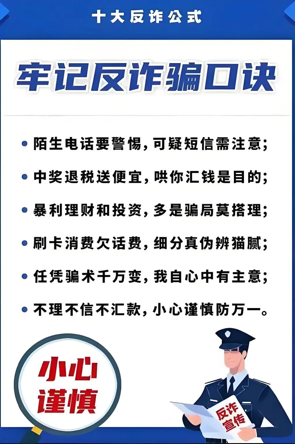 4.不要轻易相信“高回报”“紧急处理”等说辞,时刻保持警惕。