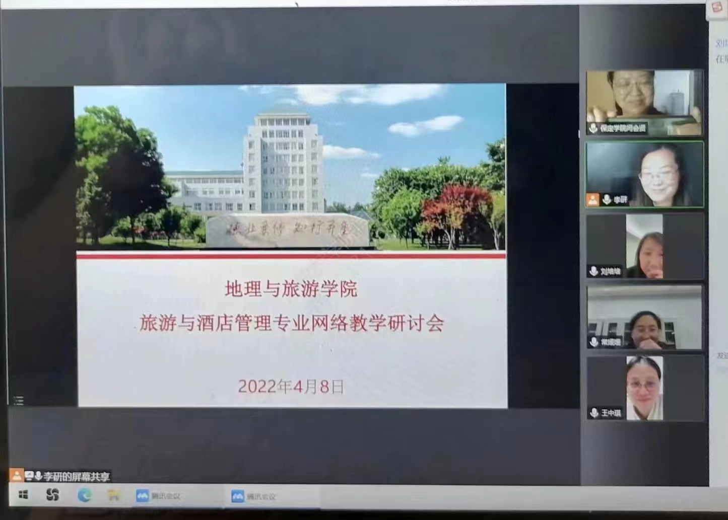 4月8日下午,旅游与酒店管理专业教研室召开2022年春季学期线上教学研讨会视频会议,总结交流前期线上教学工作经验,教研组全体成员参加会议。