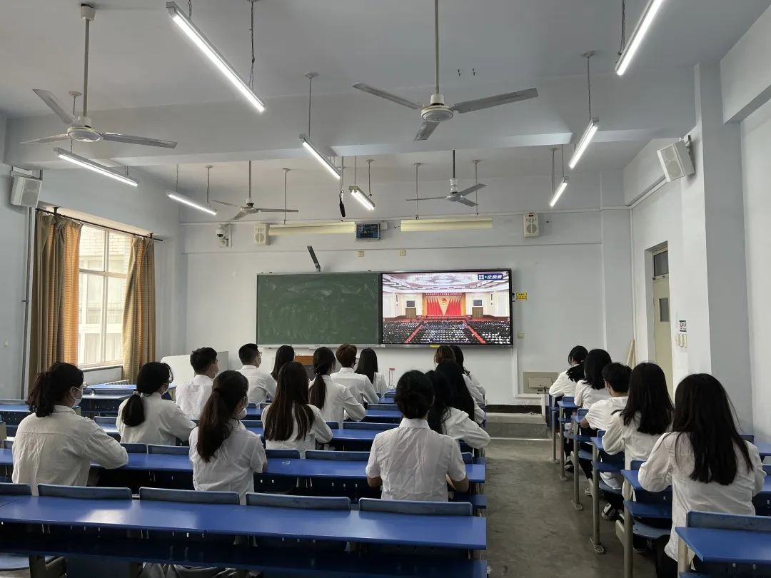 习近平总书记在讲话中深刻总结了中国共青团百年来跟党走的光辉历程,高度评价了百年来一代代中国青年为党和人民伟大事业所做的重要贡献,对新时代共青团组织发展和青少年成长成才提出了明确要求、殷切希望。太阳成集团tyc151cc组织全体青年师生努力学习大会精神,并组织部分师生代表在做好疫情防控的前提下于D-205教室观看建团一百年大会直播。