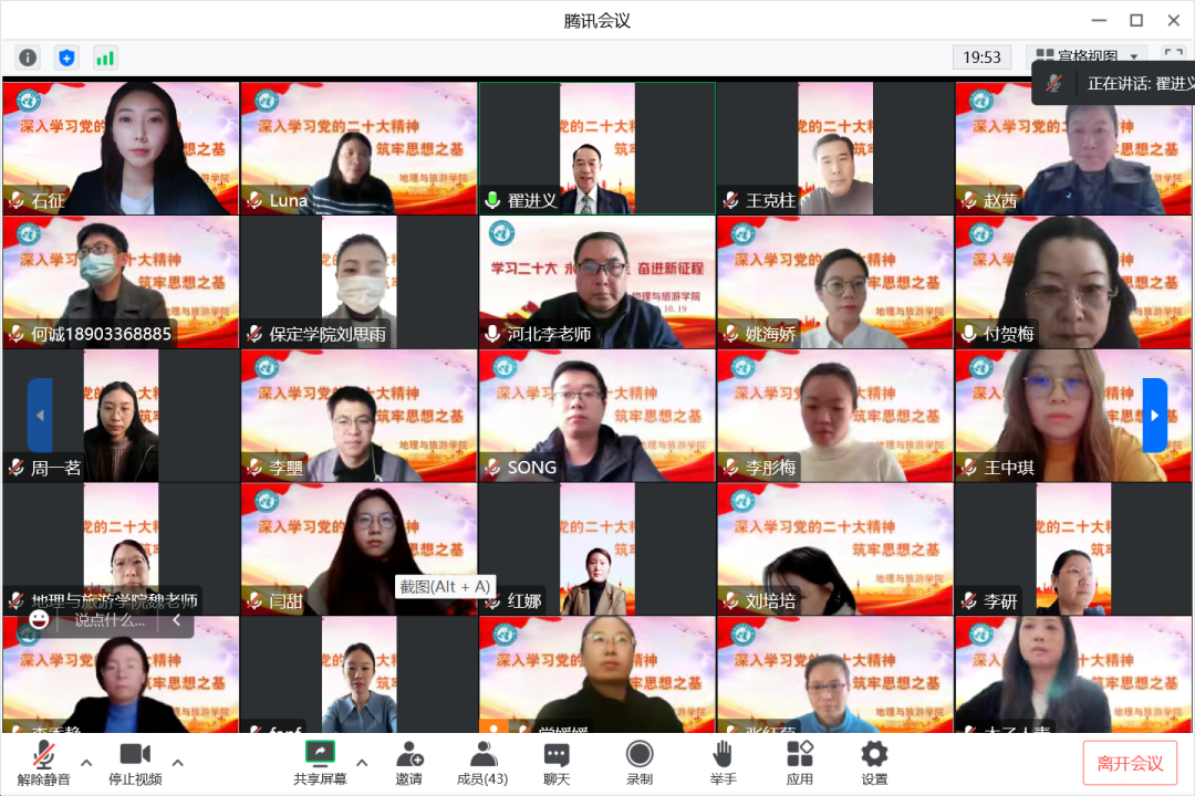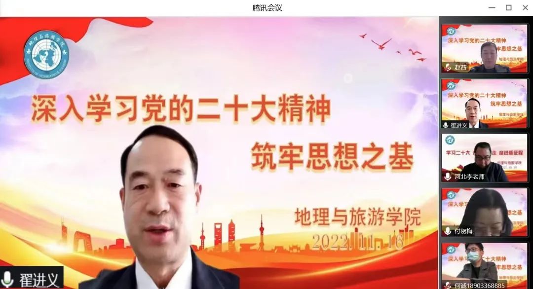 2022年11月16日下午,太阳成集团tyc151cc于线上举行全体教师会议,深入学习贯彻党的二十大精神。会上,公司党总支书记翟进义、经理付贺梅、副经理李琦分别对二十大报告精神进行了宣讲。本次二十大报告精神学习会议由翟进义书记主持。