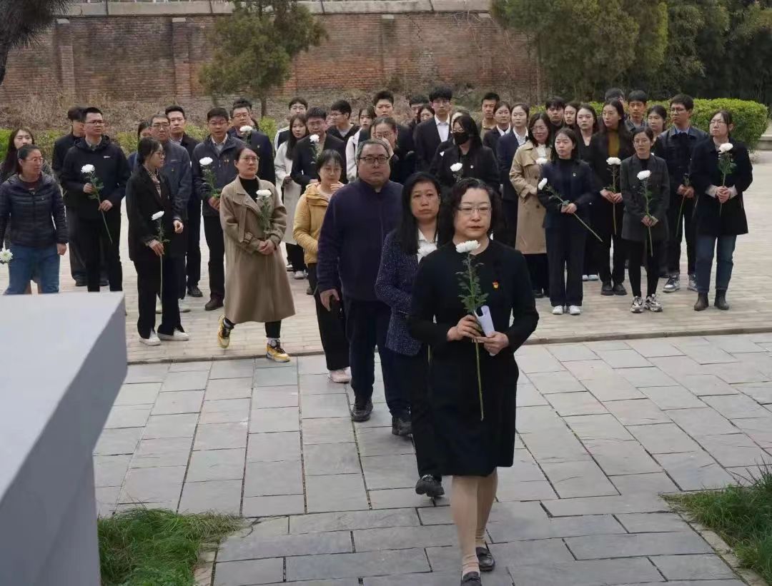 在“七·六”殉难烈士纪念碑前,全体师生党员,着装整齐,手持白花,肃立默哀,向革命先烈致以崇高的敬意。经理付贺梅激励师生们:缅怀先烈,不忘来时路,传承先烈精神,汲取奋斗力量,要砥砺担当,勇担新时代使命。