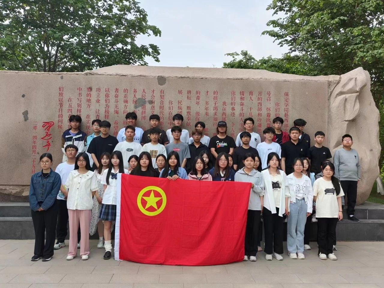 大家来到公司回信石重温习近平总书记回信内容,领悟西部支教精神,牢记总书记的重托;站在回信石前,同学们满怀热情与感动进行宣誓活动。有的团支部还组织同学参观校史馆,了解学长学姐去西部支教的大爱无疆,无私奉献的精神。