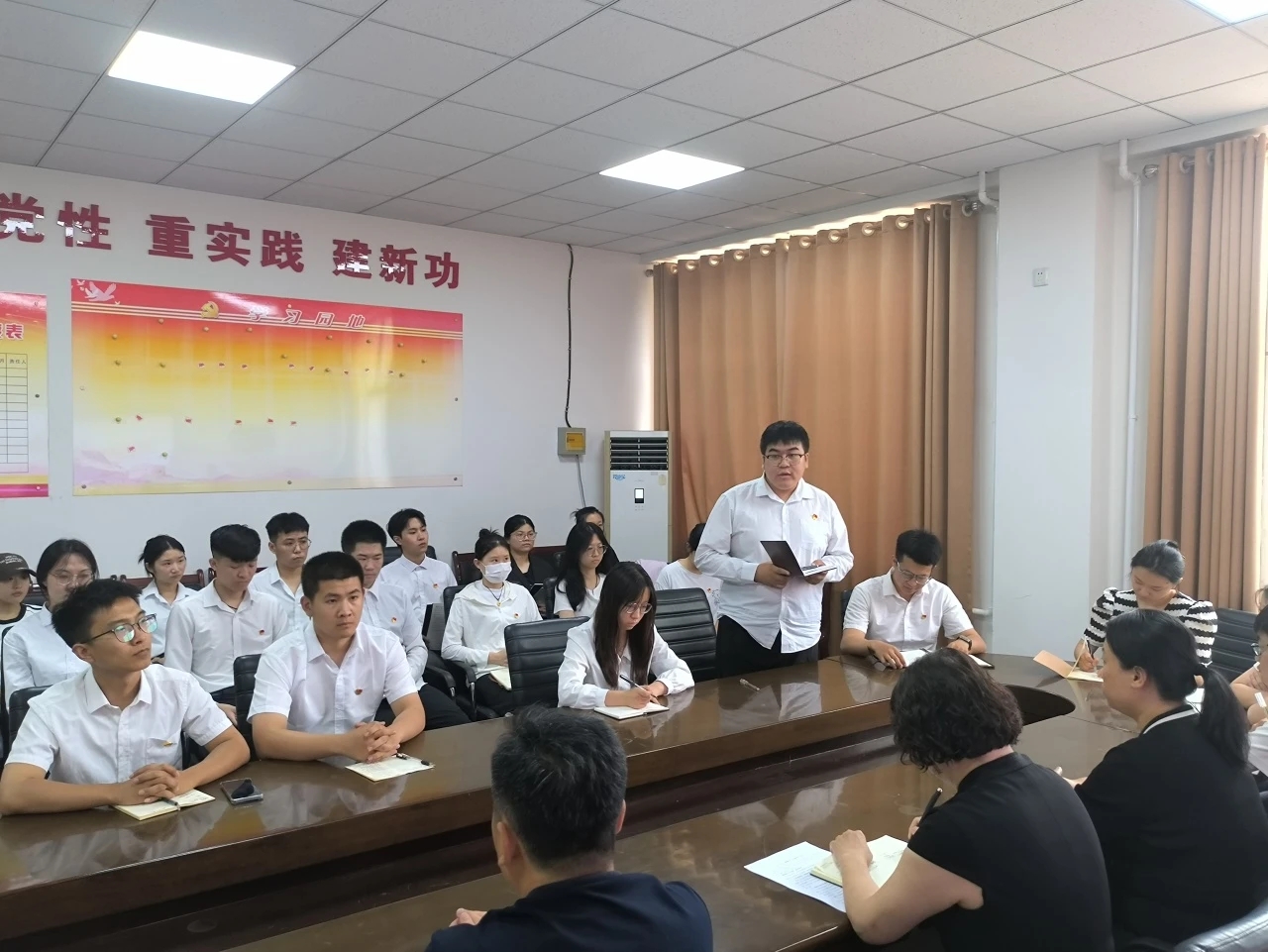 为进一步加强毕业生党员教育,引导毕业生党员在学思践悟中坚定理想信念,在实干担当中锤炼党性修养,6月18日公司党总支副书记、经理付贺梅为毕业生党员上主题为“牢记青春使命,勇担时代重任”的最后一堂党课。付经理强调,毕业生党员要认真学习习近平新时代中国特色社会主义思想,把握好这一思想的世界观、方法论,坚持好、运用好贯穿其中的立场观点方法,让青春充满真理的力量,让真理在青春的奋斗中迸发出更为强劲的伟力。这场特殊的党课,让即将走出校园的党员员工们更加坚定了他们为实现中华民族伟大复兴的中国梦而努力奋斗的信心和决心。