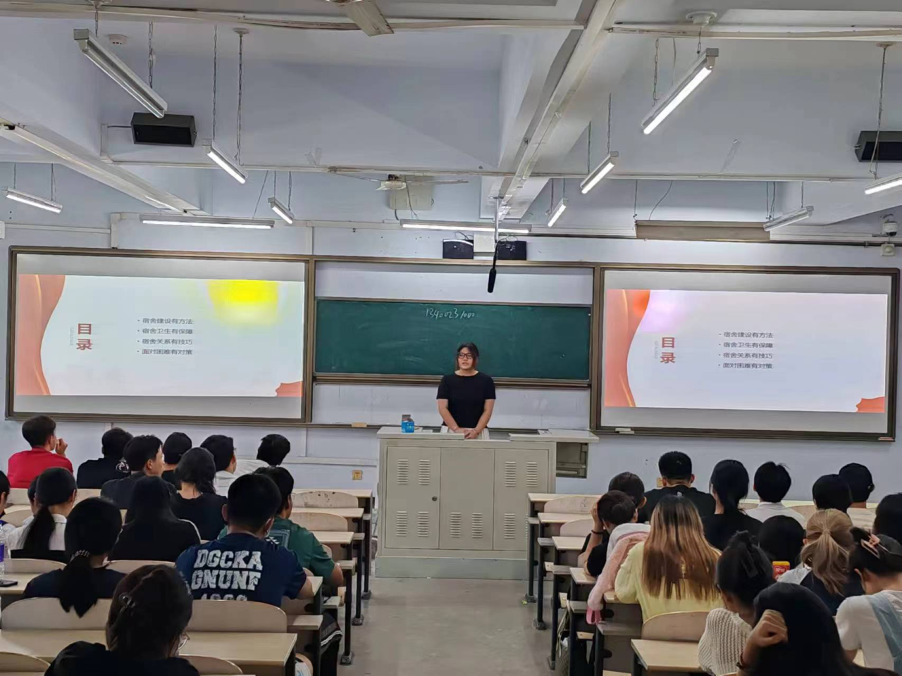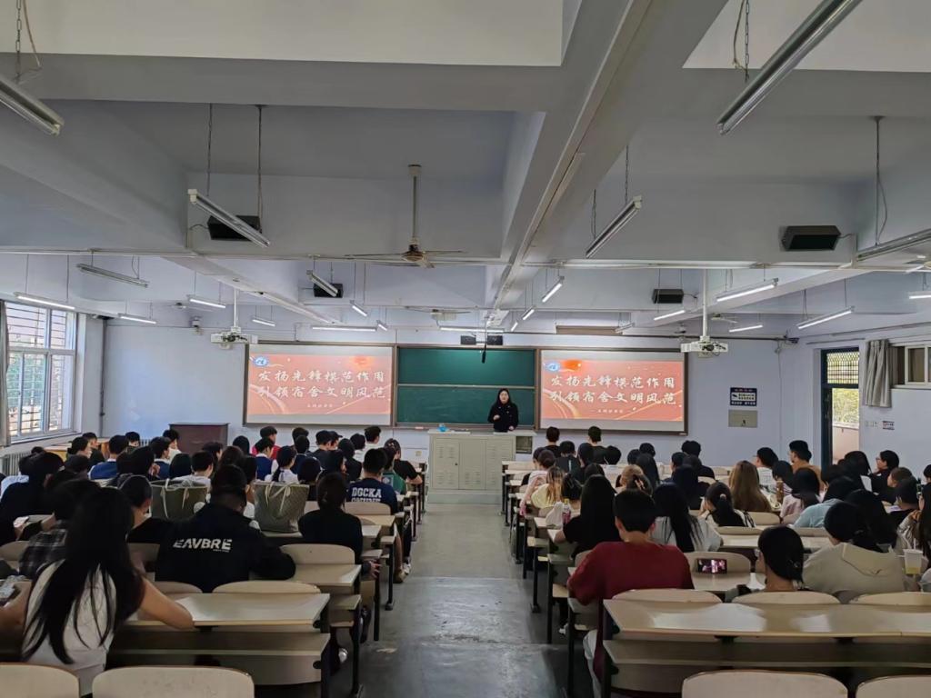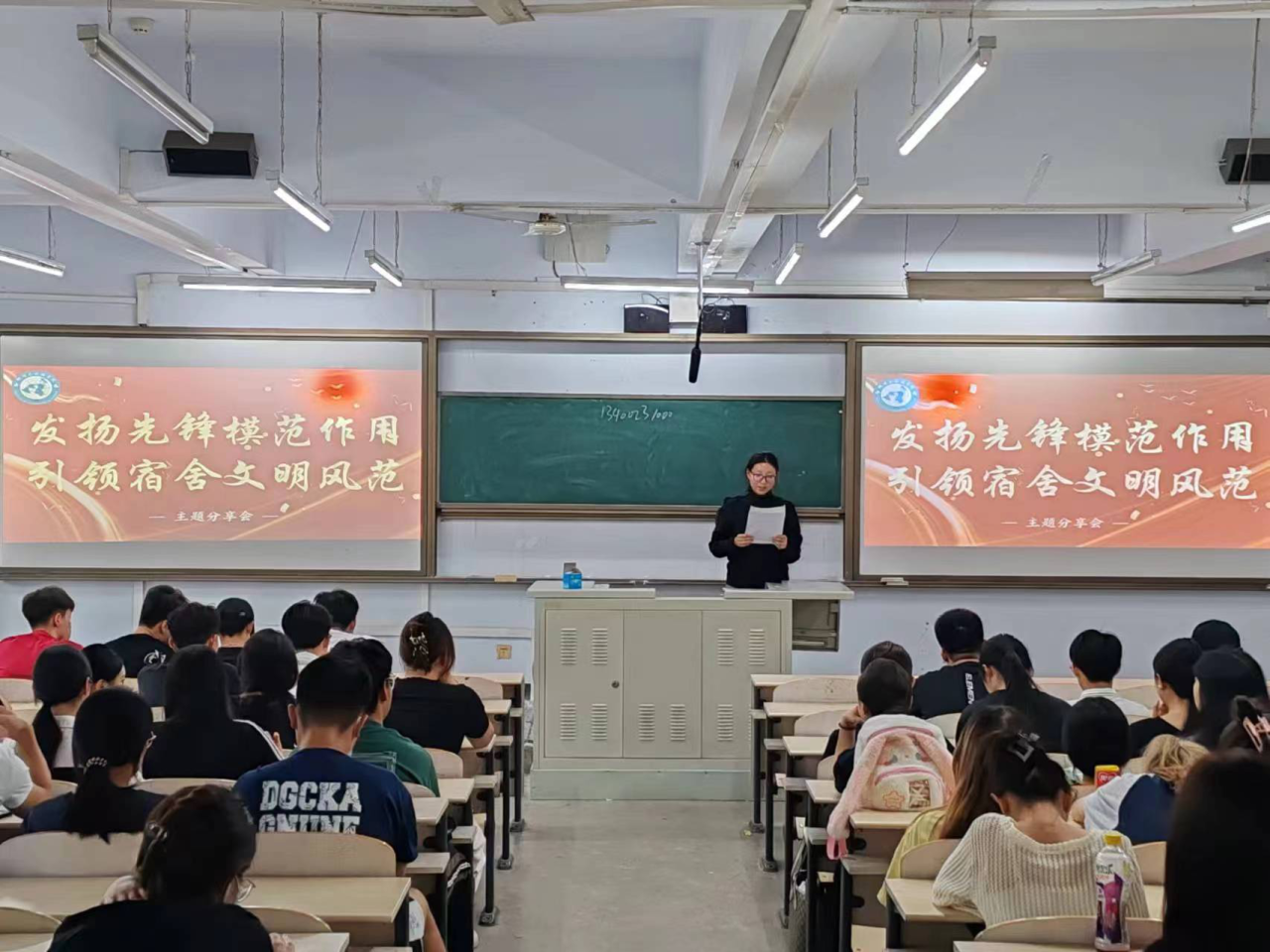 高校宿舍不仅是员工生活和学习的重要场所,更是塑造个人品格、培养集体精神的微缩社会。辅导员王司琪老师就“发扬先锋模范作用,引领宿舍文明风范”的主题进行发言,她指出:高校宿舍长是联通宿舍成员的重要桥梁,是维系宿舍和谐稳定、解决宿舍成员突发性问题的重要支柱,要及时了解宿舍成员思想动态,关心舍友。同时,强调营造和谐文明宿舍之风的重要性,要求同学们要遵守宿舍管理规定,提高安全防范意,杜绝安全隐患。