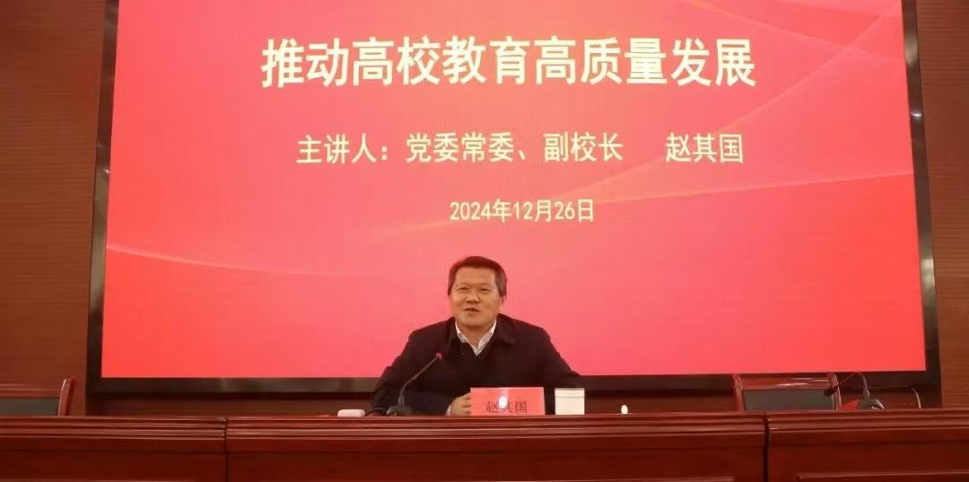 12月26日下午,党委常委、副董事长赵其国以《立足新时代,推动高校教育高质量发展》为题,在昌绪学术厅讲授专题党课。