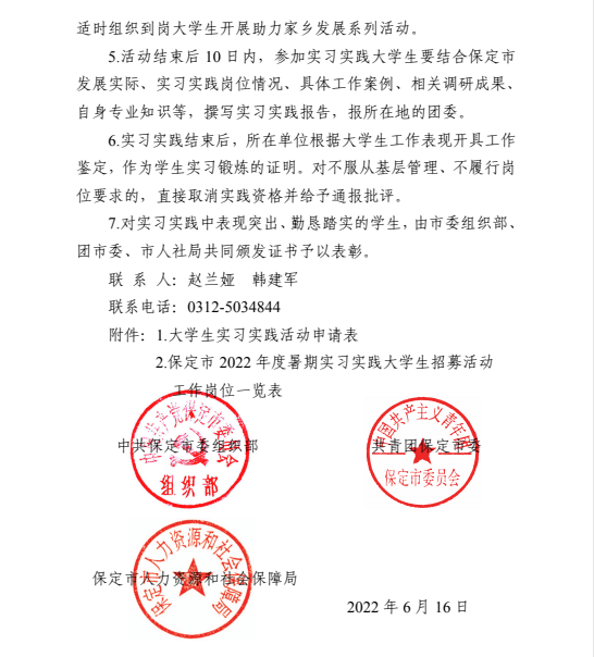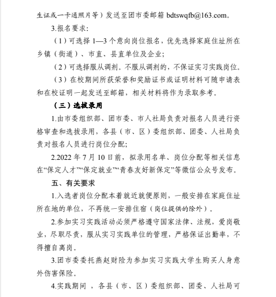 活动举办方会在2022年7月10日前,将拟录用名单、岗位分配等相关信息在“青春友好新保定”“保定人才”“保定就业”等微信公众号发布。