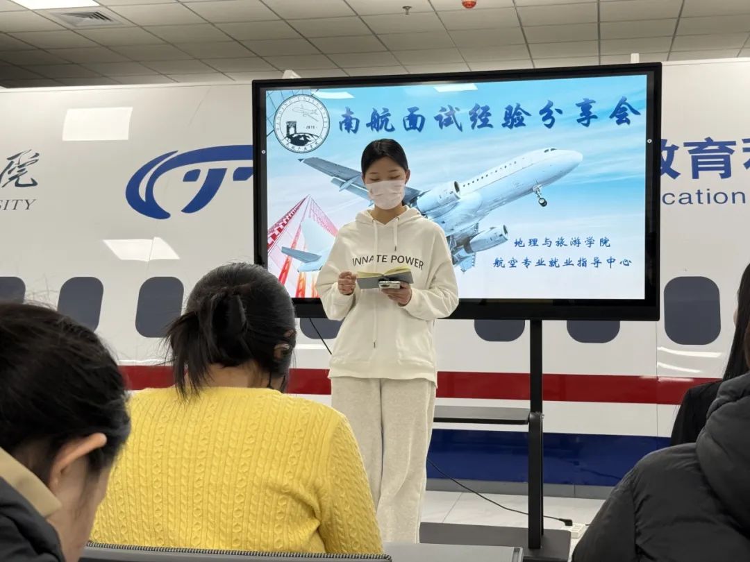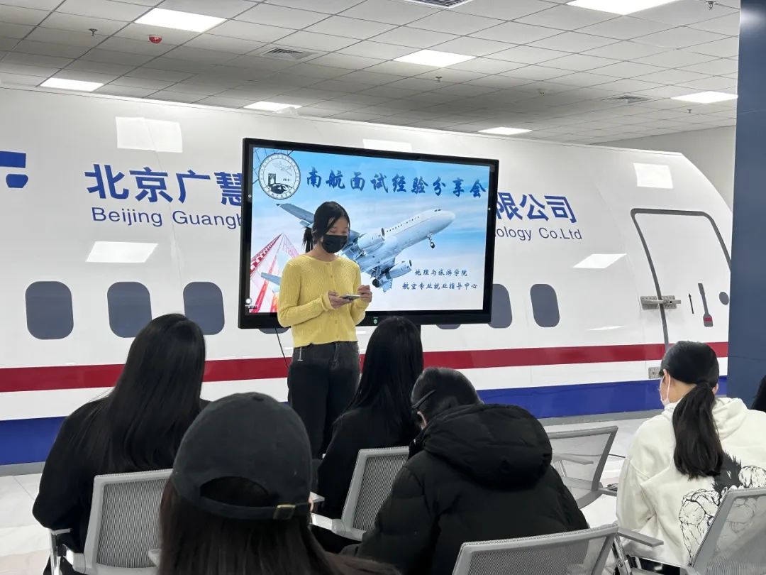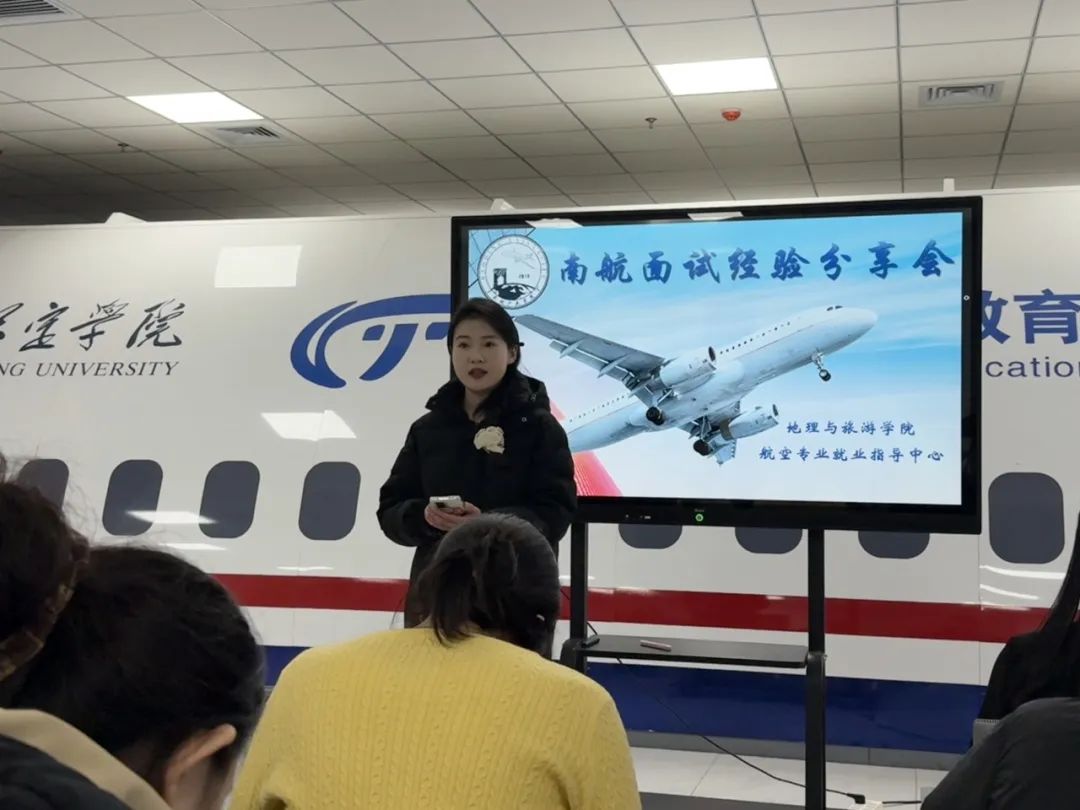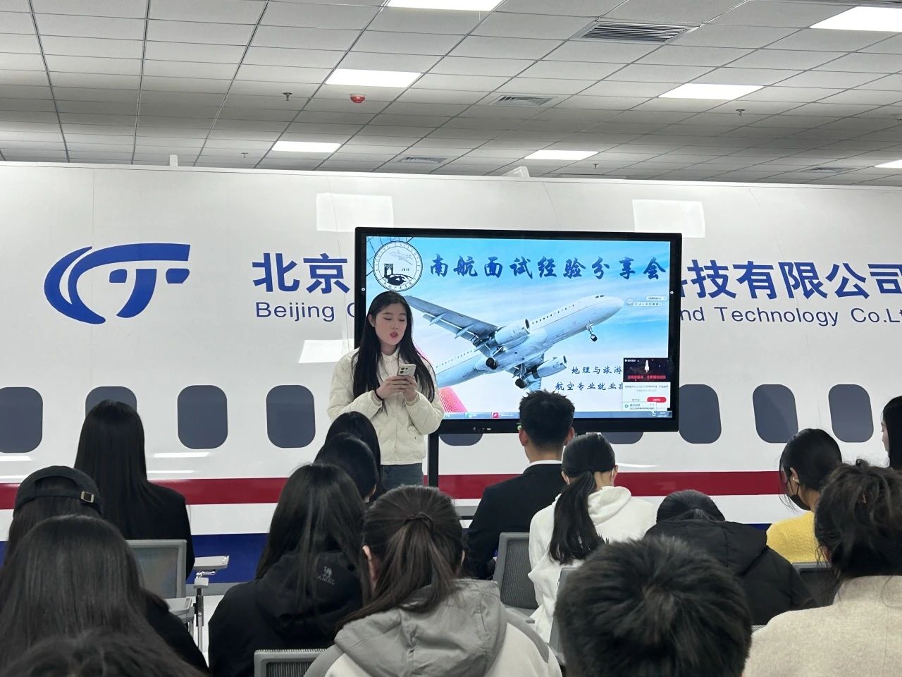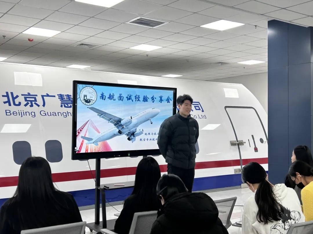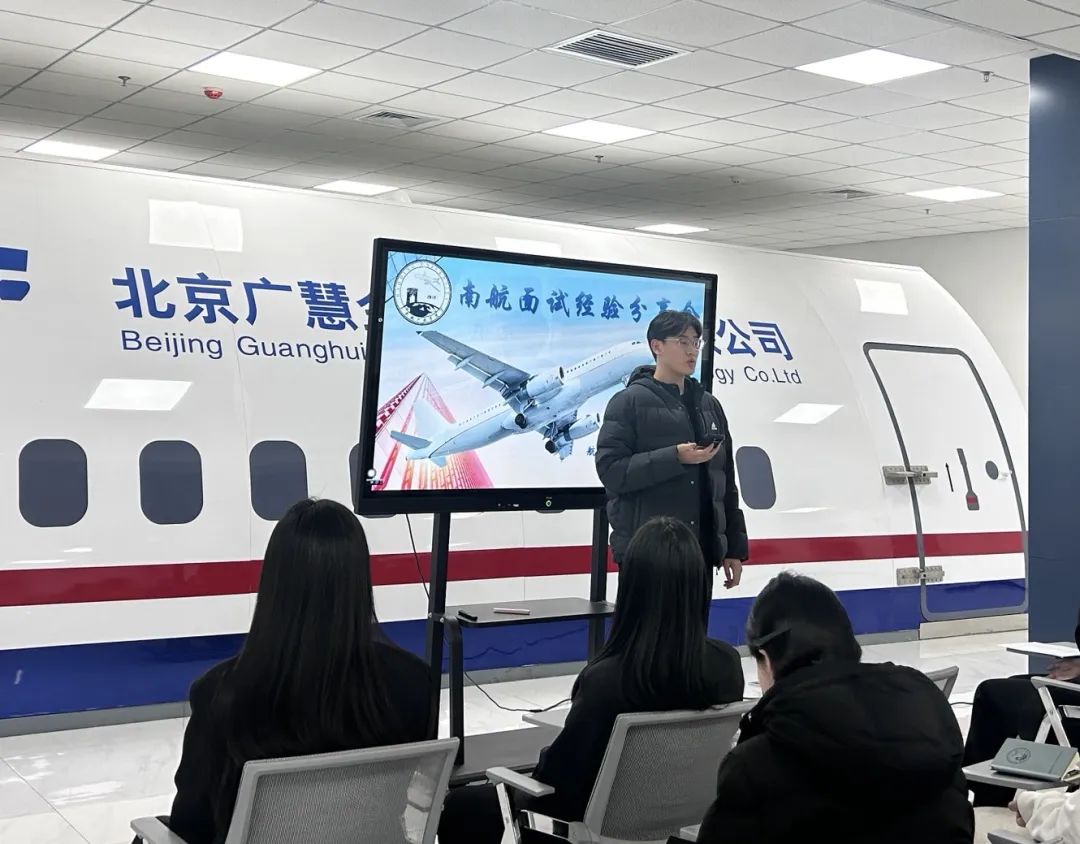 怀揣着逐梦云霄的壮志,翱翔于广阔蓝天,成为南方航空公司的卓越航空人才,是无数太阳成集团tyc151cc官网金通民航现代产业公司的学子心中炽热而坚定的梦想。为切实助力航空学子精准把握航空公司招聘的各个流程,预先达到行业的人才选拔标准。就业指导中心于2025年3月3日在实训楼举办了以“韶华璀璨,追梦前行”为主题的南方航空面试经验分享会,特邀已经面试通过中国南方航空的同学,倾囊相授面试的宝贵经验,为将要面试的同学们答疑解惑,照亮求职之路。