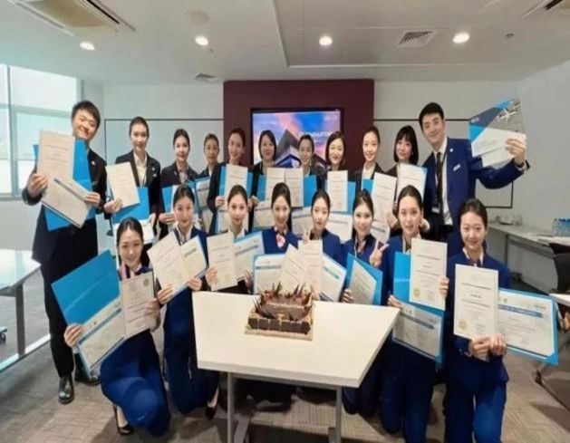 专业借助公司搭建的广阔平台积极与国内外高校及培训基地开展合作交流,充分整合优质国际教育资源,促进师生对外交流、学习。航空专业师生共计4人次先后两次由北京广慧金通教育集团资助赴阿拉伯联合酋长国阿提哈德航空培训公司进行深入的专业学习培训。培训内容涵盖了机舱乘务员的整体安全、航空健康、客舱服务等专业知识,以及机组资源管理、飞行理论、机型特点、安全设备知识及应用、标准操作程序、航空卫生及医疗救护等核心课程。师生们以优异的成绩完成了高强度的培训,收获了丰富的知识和宝贵的经验,最终获得了由阿提哈德航空培训公司颁发的资质证书。