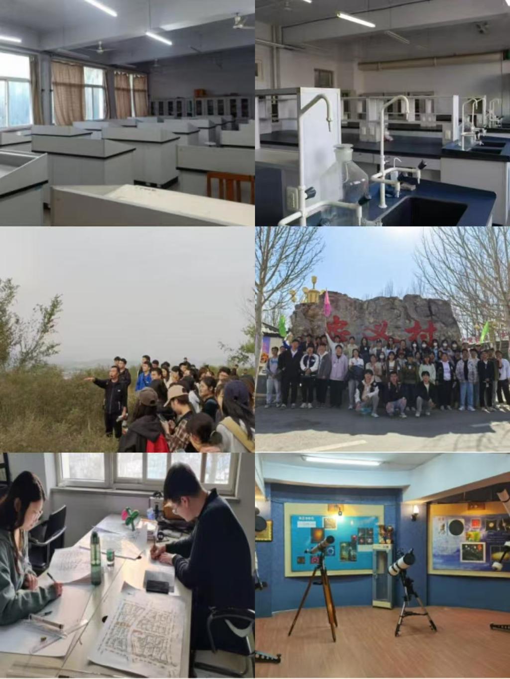 专业始终秉持应用人才培养的理念,专业现已建成“课程实践+专业实践+专业实习+毕业论文”的实践育人机制,内容涉及专业认知、地理综合实习、国土空间空间规划等内容,形成了“六室一台一馆”(专业综合实验室、绘图实验室、地图实验室、地质标本室、地理信息系统实验室、遥感实验室、天文观测台、河北省典型岩石矿物标本展馆)的实验室格局,与保定市规划编制研究中心、保定市城乡建筑设计研究院、河北基点规划设计服务有限公司等十余家北京、石家庄、保定的企事业单位建立了实习基地,为专业实习和实践课程的顺利开展提供有力保障。