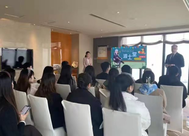 参观完世博博物馆后,会展学子们来到上海世博洲际 酒店进行参观。并与酒店总经理 Mr.Role 进行了面对面的交流。Mr.Role 在对话中首分享了自己 40 年的从业传奇职场经历,分享了其中的酸甜苦辣,让在座的同学们知道任何行业,任何成功都是来之不易的。他更是积极鼓励员工,“要勇于挑战和突破自我永不受限自己的专业所学,要有不断试错的勇气,直至找到自己的兴趣所在,专长所在,再投入其中,相信假以时日,一定会收获你想要的一切。”同学们听完之后感悟颇多,更加坚定了做会展人的信心,明确了未来的职业发展方向。