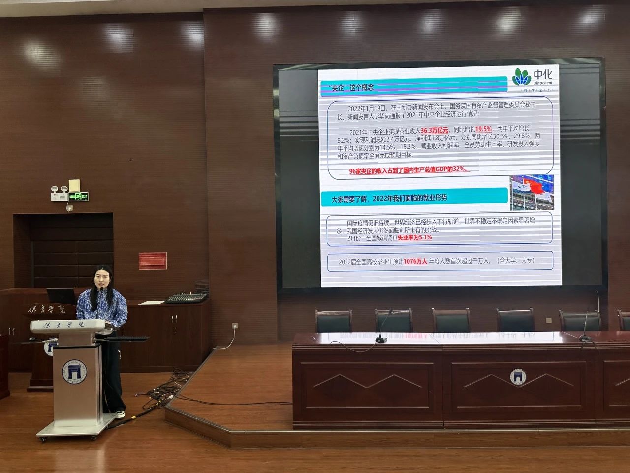 会议伊始,辅导员王司琪老师逐一介绍了与会领导及实习单位招聘负责人:沈阳局长春客运段乘务排班经理楚洪亮、沈阳局长春客运段乘务排班经理杜佳琪、沈阳局长春客运段人事部门经理徐妮娜、中海集团雄安分公司人事行政部负责人庄佳伟、茂集团人力资源部经理王少卿、北京锦悦总经理李光国、北京锦悦总经理助理刘颂、文津俱乐部办公室副主任魏腾飞、文津俱乐部团总支书记周弋慈。