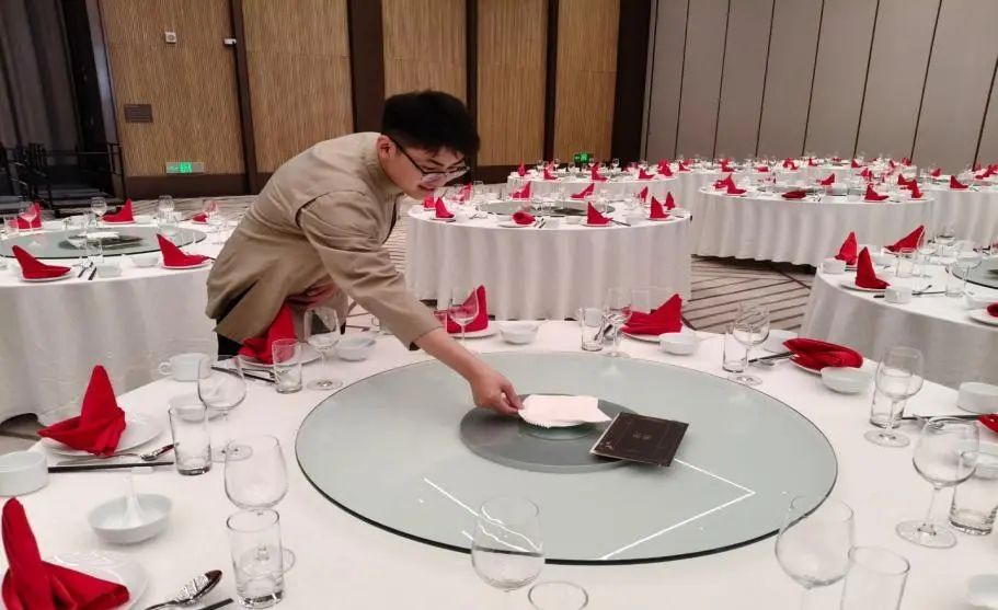 在宴会厅实习期间,张桐浩通过练习摆台和端托盘,学会了精确和细心。最初,因餐碟摆放不均被经理指导,之后练习到每个骨碟与桌边的距离都精确到2厘米。在百人晚宴中,学会了用余光观察全场需求。前辈告诉他,端托盘需要巧劲而非蛮力,他通过在宿舍练习平衡,提高了稳定性。现在,能记住不同酒杯的摆放间距,并预判更换餐碟的最佳时机。他相信这些技能将对未来有益。