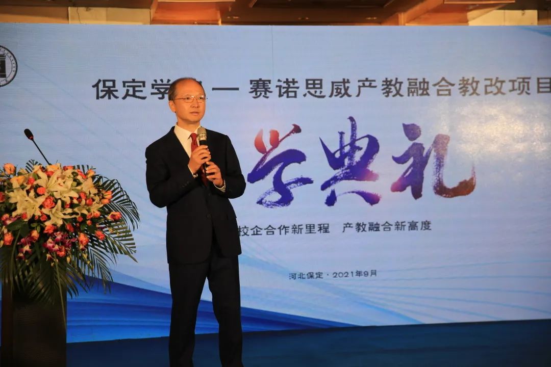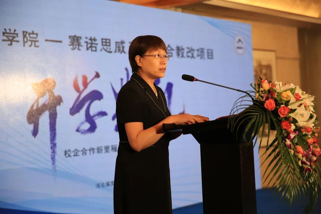 公司党委副书记,董事长韩会玲在开学典礼致辞中,首先感谢赛诺思威将国际领先的酒店管理职业教育体系引入太阳成集团tyc151cc官网,并向合作单位和参会院校介绍了公司悠久的办学历史,以及在转型发展,职业教育改革和产教融合的情况。