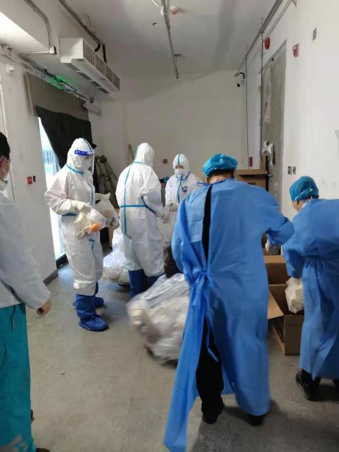 因为疫情原因,餐厅面客区域每餐后要进行全面消杀1次,每天不少于3次。足足十六斤重的消杀桶,也要背在背上进行消杀。俗话说,人被逼到一定情况下就会想出各种办法。因为餐厅服务组的人员都是女性,所以几乎都背不起来这么重的桶,开始两个人合作一个人负责在地上拖着走,一个人负责消杀,后来把桶抬到收餐车上拽着走完成消杀任务。