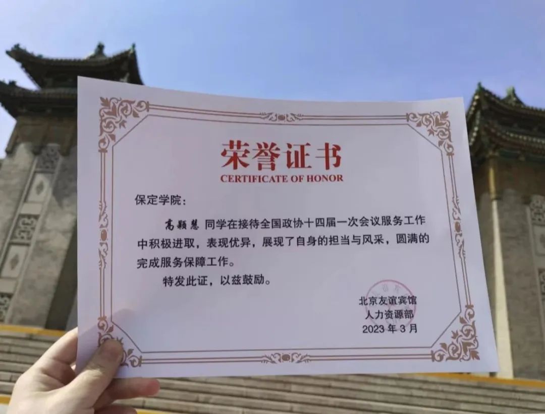 他们统一着装,井井有序地开展酒店服务工作,出色地完成了会议服务、餐饮服务、客房服务等岗位实践。他们以积极的精神面貌和过硬的专业素养,受到了代表和酒店领导的一致认可和表扬,充分展现了保院地旅学子昂扬向上的精神风貌,为两会的顺利召开提供了保障。