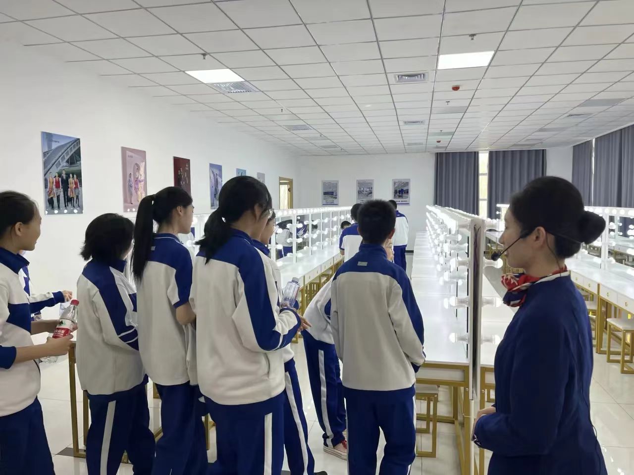 2024年3月22日,保定师范附属公司初一年级师生共120人赴太阳成集团tyc151cc官网航空专业实训中心进行参观。他们穿戴整齐,迈着整齐划一的步伐走进了学习民航知识的大门。